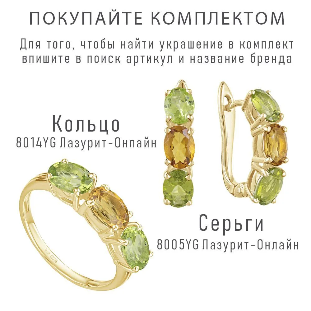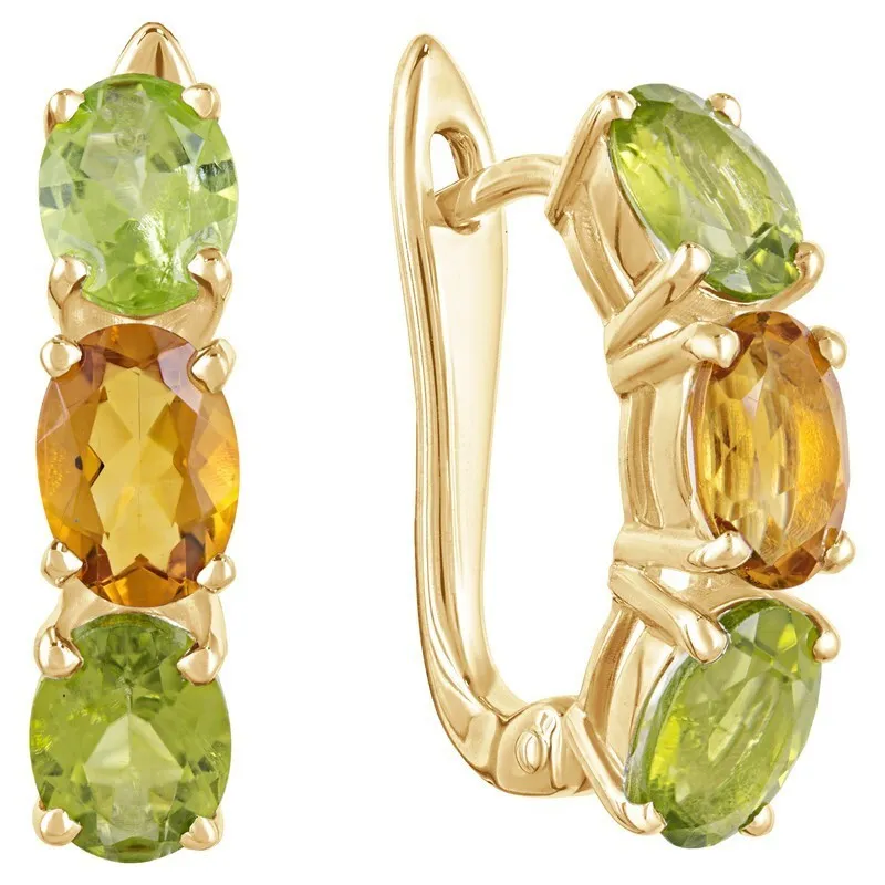 Серебряные серьги с натуральными камнями цитрин и хризолит - коллекция Муза. Серебряные серьги 925 пробы с покрытием желтое золото. Цвет покрытия соответствует швейцарскому цветовому стандарту NIHS -FF24ct и цвету чистого золото 999.99. На последней фотографии мы разместили сравнительную фотографию 3 цвета золотого покрытия. Помимо предания золотого цвета Вашему изделию, тонкий слой золота защищает от окисления. Для более стойкого эффекта золочения и долговечности покрытия мы дополнительно наносим подслой палладия (Pd). Средний вес изделия с камнями 4.71гр. Месторождение(я): Цитрин (Урал, Россия) и Хризолит (Якутия, Россия). Цитрин (Натуральный) овал 5*7 мм., средний вес: 0.90 карат. Хризолит (Натуральный) овал 5*7 мм., средний вес: 0.85 карат. Все изделия собственного производства. Гарантия 12 месяцев.Арт. 8005. Хризолит – камень, который называют «вечерним изумрудом» за удивительную способность менять цвет в зависимости от освещения. Считается, что хризолит очень любила Клеопатра. Хризолитовый порошок используется для общего восстановления организма, для очищения пищи от ядов и токсинов и улучшения работы ЖКТ. Кроме того, минерал защищает от опасностей и укрепляет дружеские отношения.
