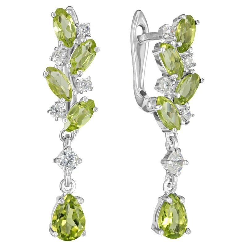 Серебряные серьги с натуральным хризолитом - коллекция Росинка. Средний вес изделия с камнями 4.46 гр. Месторождение: Хризолит (Якутия, Россия). Хризолит (Натуральный) груша 5*7 мм., средний вес: 0.55 карат. Все изделия собственного производства. Гарантия 12 месяцев.Арт. 8427. Хризолит – камень, который называют «вечерним изумрудом» за удивительную способность менять цвет в зависимости от освещения. Считается, что хризолит очень любила Клеопатра. Хризолитовый порошок используется для общего восстановления организма, для очищения пищи от ядов и токсинов и улучшения работы ЖКТ. Кроме того, минерал защищает от опасностей и укрепляет дружеские отношения.