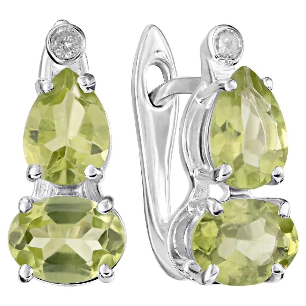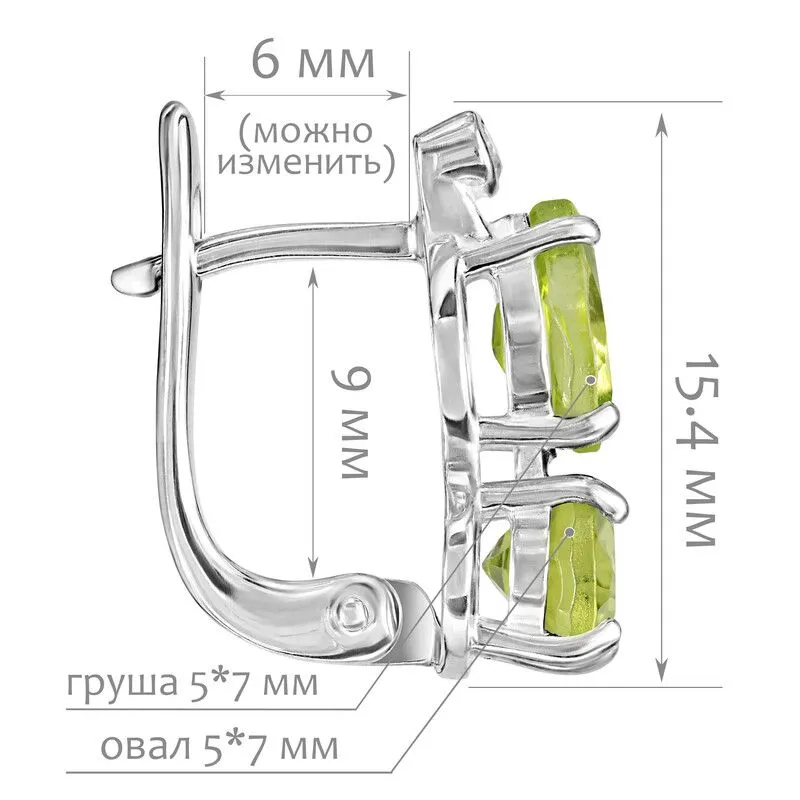 Серебряные серьги с натуральным хризолитом - коллекция Сансара / Без покрытия.Средний вес украшения с камнями 3.22 гр.Месторождение(я): Хризолит (Якутия, Россия).Ювелирные вставки:Хризолит (Натуральный) овал 5*7 мм., средний вес: 0.84 карат.Хризолит (Натуральный) груша 5*7 мм., средний вес: 0.55 карат.Белый Нанокристалл круг 2 мм., средний вес: 0.06 карат.Все изделия собственного производства и имеют гарантию 12 месяцев. Арт. 8698NP . Хризолит – камень, который называют «вечерним изумрудом» за удивительную способность менять цвет в зависимости от освещения. Считается, что хризолит очень любила Клеопатра. Хризолитовый порошок используется для общего восстановления организма, для очищения пищи от ядов и токсинов и улучшения работы ЖКТ. Кроме того, минерал защищает от опасностей и укрепляет дружеские отношения.
