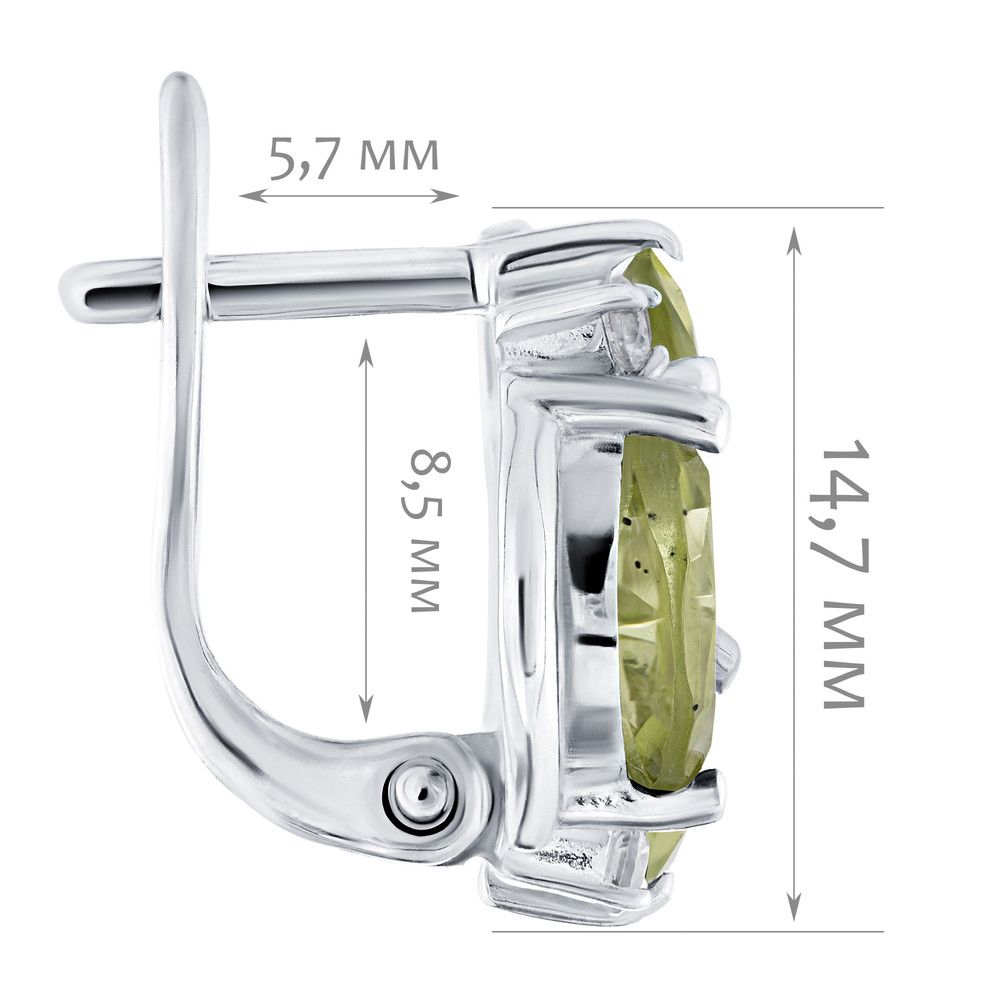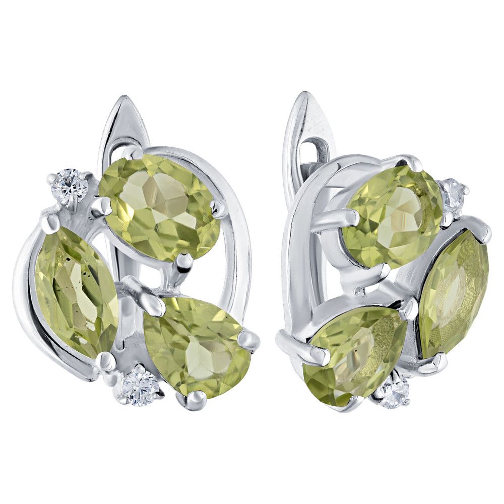 Серебряные серьги с натуральным хризолитом - коллекция Фортуна / Без покрытия. Средний вес украшения с камнями 5.71 гр. Месторождение: Хризолит (Якутия, Россия) Ювелирные вставки: Хризолит (Натуральный) груша 5*7 мм., средний вес: 0.55 карат. Хризолит (Натуральный) овал 5*7 мм., средний вес: 0.84 карат. (Натуральный) круг 2 мм., средний вес: 0.06 карат. Все изделия собственного производства и имеют гарантию 12 месяцев. Арт. 8778NP . Хризолит – камень, который называют «вечерним изумрудом» за удивительную способность менять цвет в зависимости от освещения. Считается, что хризолит очень любила Клеопатра. Хризолитовый порошок используется для общего восстановления организма, для очищения пищи от ядов и токсинов и улучшения работы ЖКТ. Кроме того, минерал защищает от опасностей и укрепляет дружеские отношения.