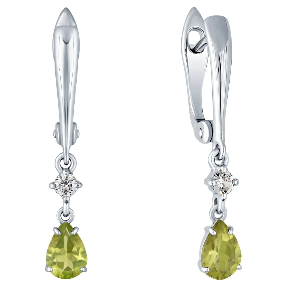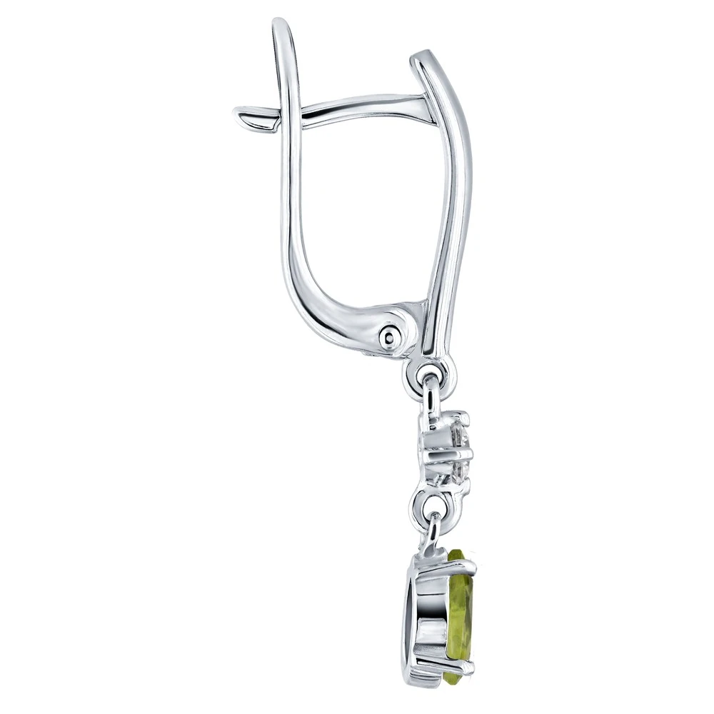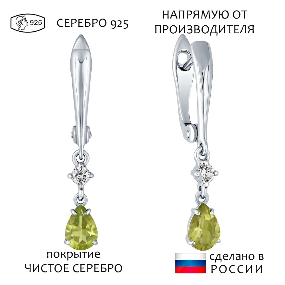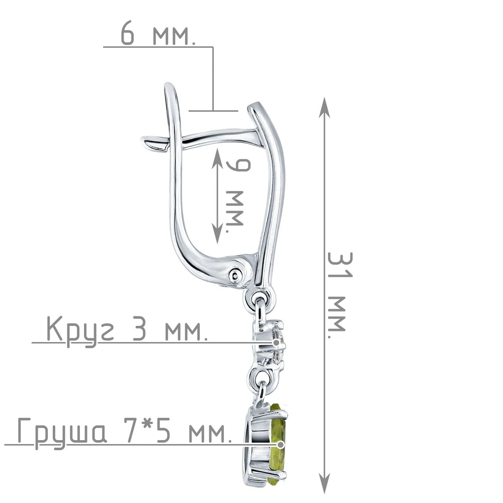 Серебряные серьги с натуральным хризолитом - коллекция Алсу (малая) / Чистое Серебро.