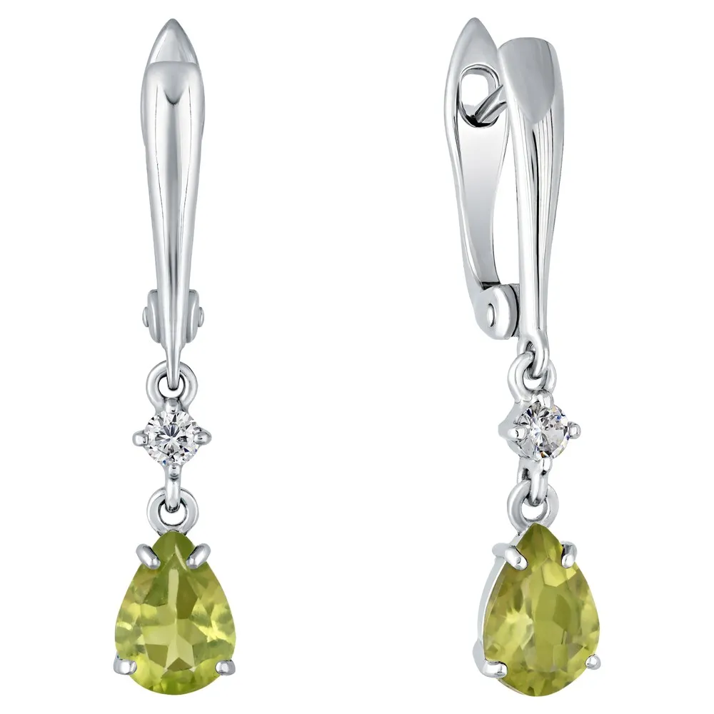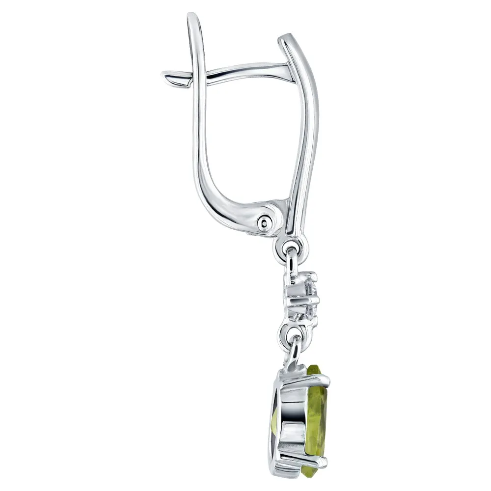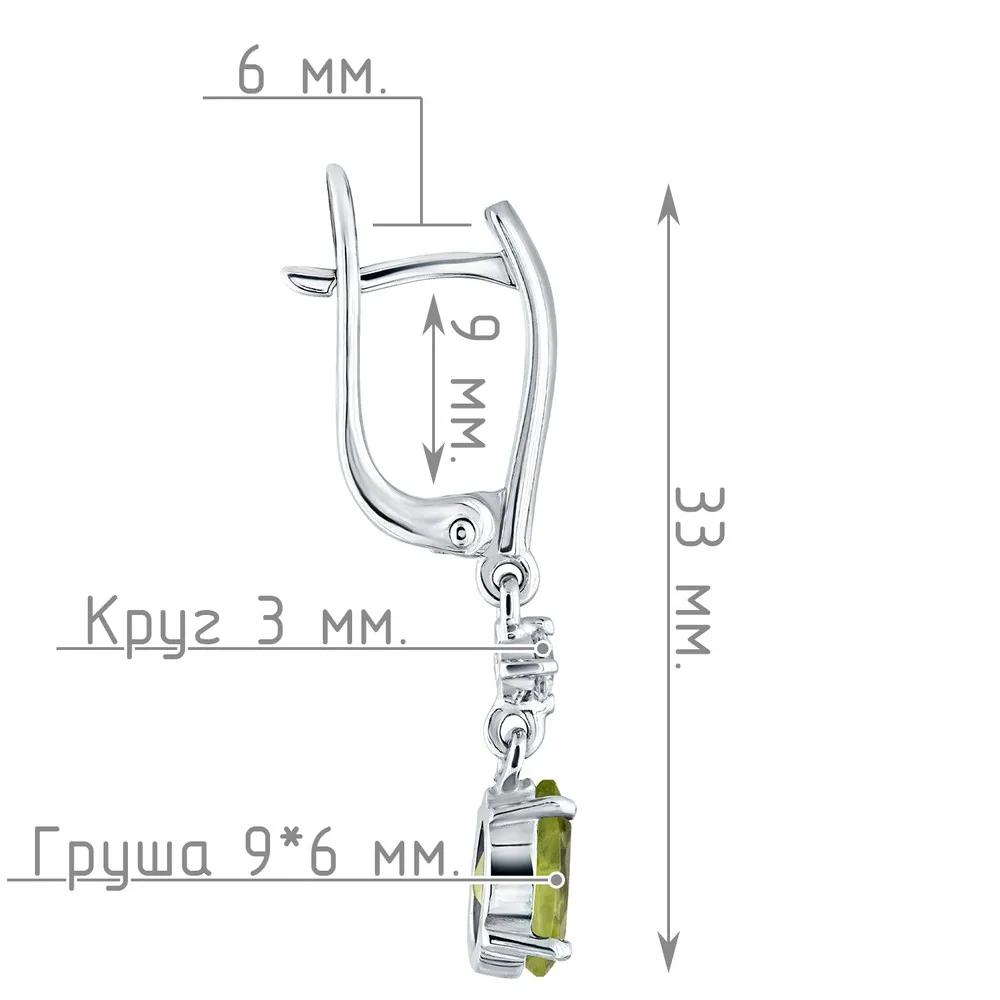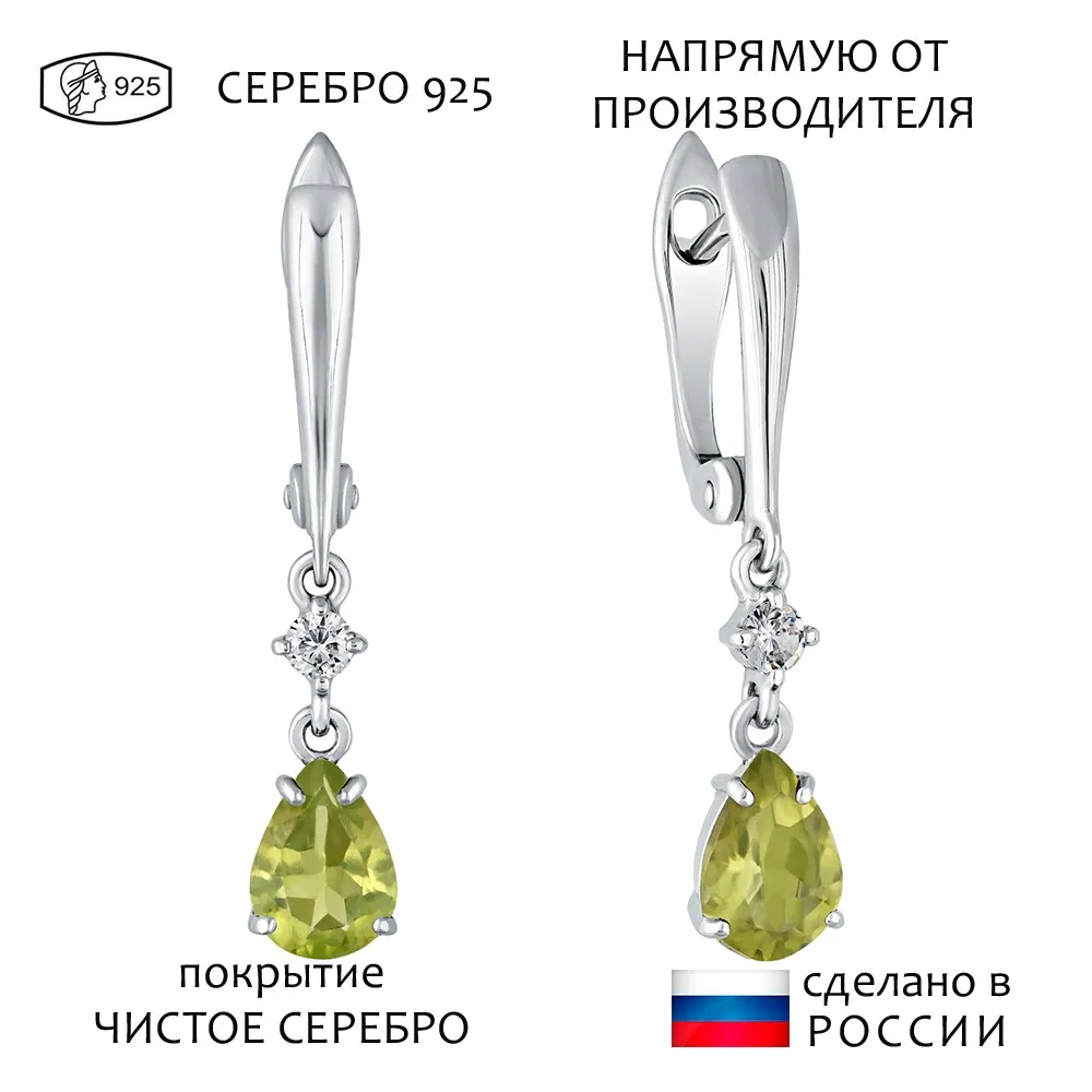 Серебряные серьги с натуральным хризолитом - коллекция Алсу (большая) / Чистое Серебро.