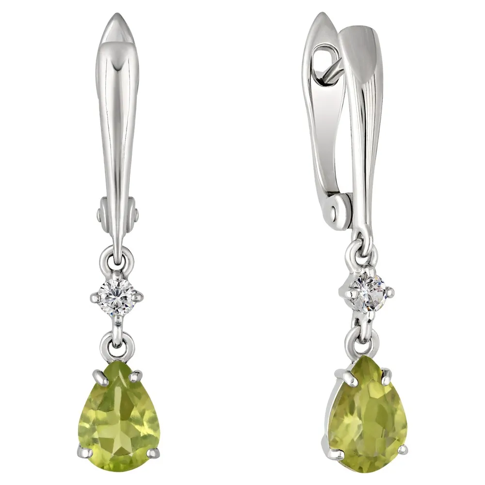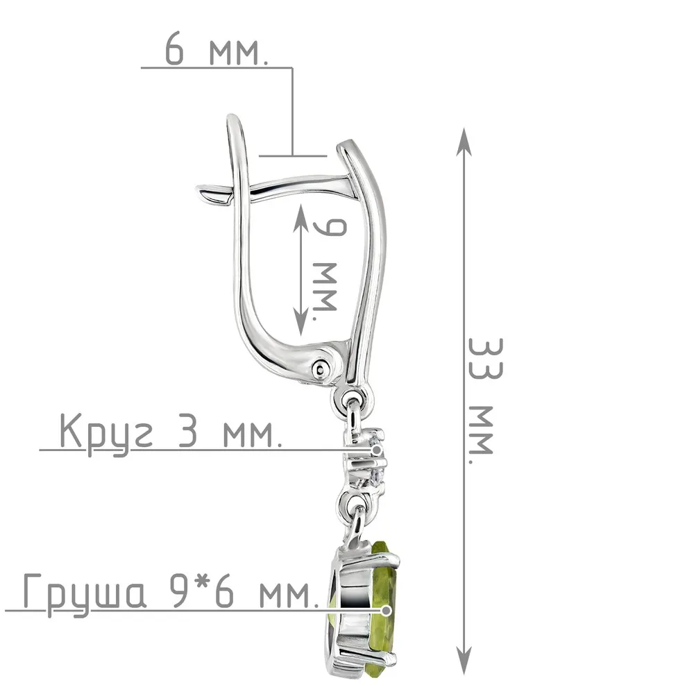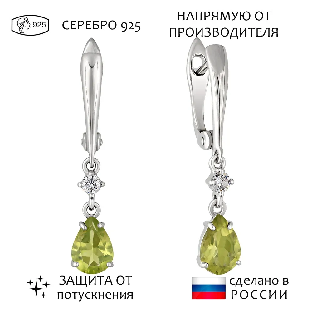 Серебряные серьги с натуральным хризолитом - коллекция Алсу (большая) / Без покрытия.