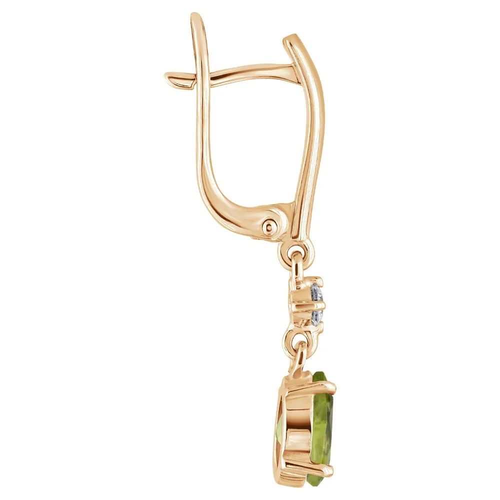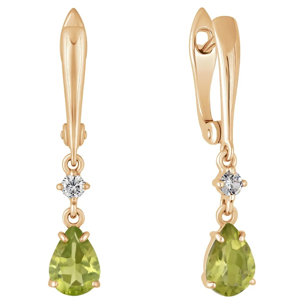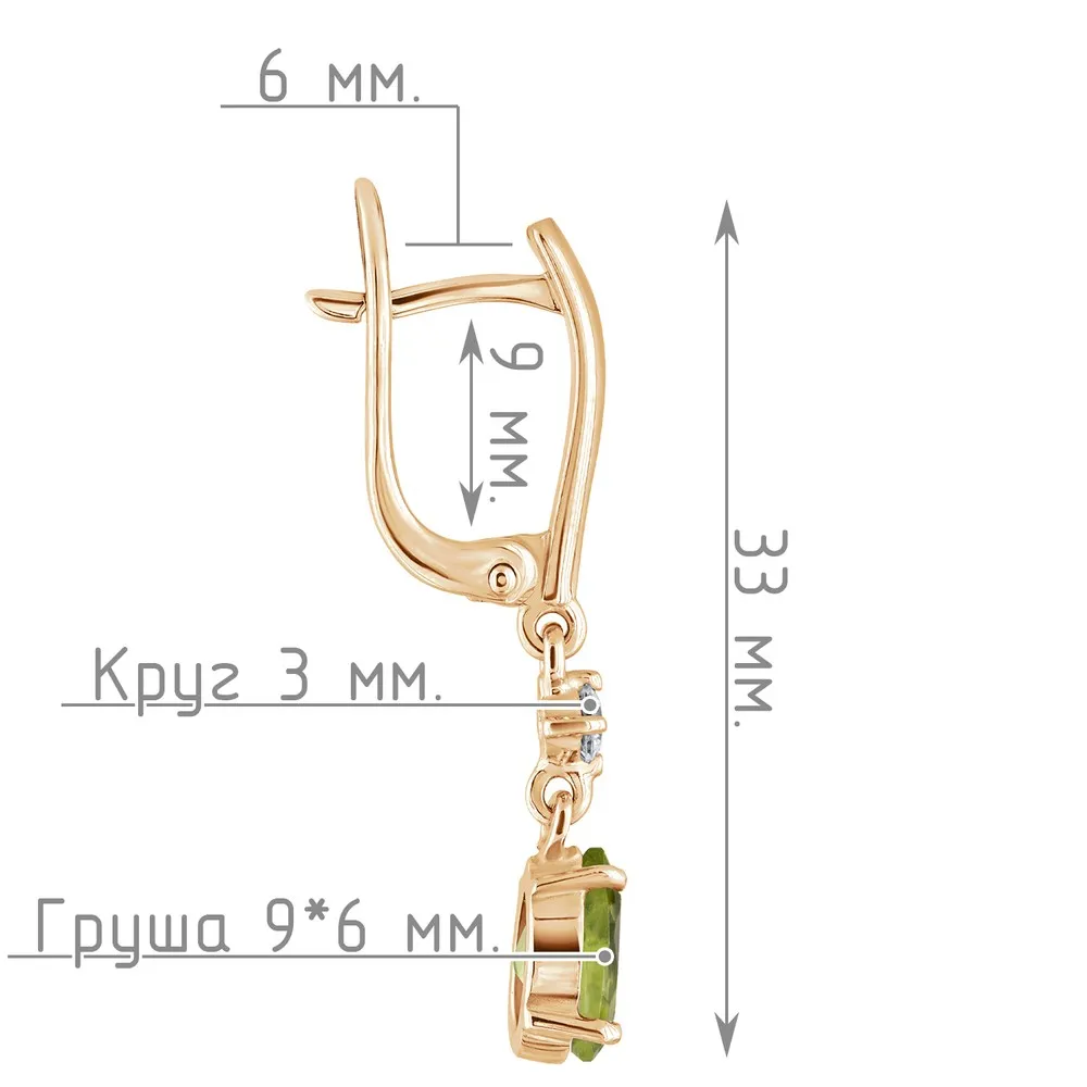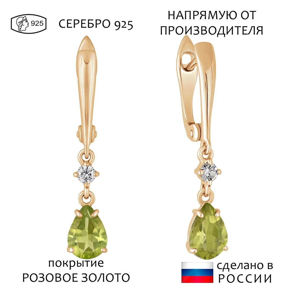 Серебряные серьги с натуральным хризолитом - коллекция Алсу (большая) / Розовое Золото.