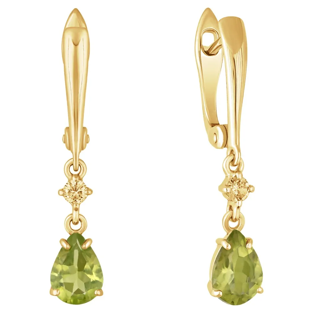 Серебряные серьги с натуральным хризолитом - коллекция Алсу (большая) / Желтое Золото.