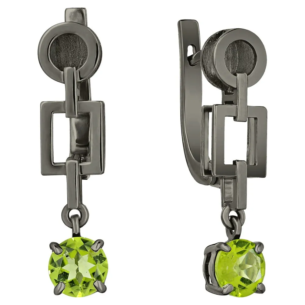 Серебряные серьги с натуральным хризолитом - коллекция Классик, покрытие Черный Родий.