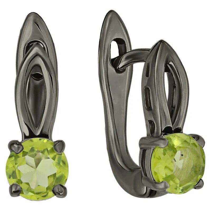 Серебряные серьги с натуральным хризолитом - коллекция Мона, покрытие Черный Родий. Средний вес украшения с камнем составляет 2.57 гр. Месторождение(я): Хризолит (Якутия, Россия).