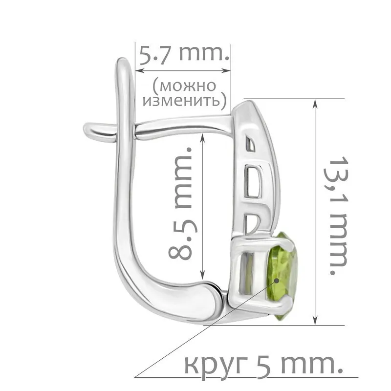 Серебряные серьги с натуральным хризолитом - коллекция Мона. Средний вес изделия с камнем составляет 2.57 гр. Месторождение(я): Хризолит (Якутия, Россия). Хризолит (Натуральный) круг 5 мм., средний вес: 0.56 карат. Все изделия собственного производства. Гарантия 12 месяцев.Арт. 7715. Хризолит – камень, который называют «вечерним изумрудом» за удивительную способность менять цвет в зависимости от освещения. Считается, что хризолит очень любила Клеопатра. Хризолитовый порошок используется для общего восстановления организма, для очищения пищи от ядов и токсинов и улучшения работы ЖКТ. Кроме того, минерал защищает от опасностей и укрепляет дружеские отношения.