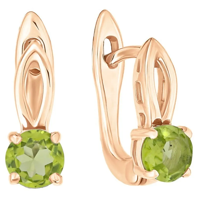 Серебряные серьги с натуральным хризолитом - коллекция Мона. Серебряные серьги 925 пробы с покрытием красное золото. Цвет покрытия соответствует швейцарскому цветовому стандарту NIHS -5N и цвету красного золота 585 в России. На последней фотографии мы разместили сравнительную фотографию 3 цвета золотого покрытия. Помимо предания золотого цвета Вашему изделию, тонкий слой золота защищает от окисления. Для более стойкого эффекта золочения и долговечности покрытия мы дополнительно наносим подслой палладия (Pd). Средний вес изделия с камнем составляет 2.57 гр. Месторождение(я): Хризолит (Якутия, Россия). Хризолит (Натуральный) круг 5 мм., средний вес: 0.56 карат. Все изделия собственного производства. Гарантия 12 месяцев.Арт. 7715. Хризолит – камень, который называют «вечерним изумрудом» за удивительную способность менять цвет в зависимости от освещения. Считается, что хризолит очень любила Клеопатра. Хризолитовый порошок используется для общего восстановления организма, для очищения пищи от ядов и токсинов и улучшения работы ЖКТ. Кроме того, минерал защищает от опасностей и укрепляет дружеские отношения.