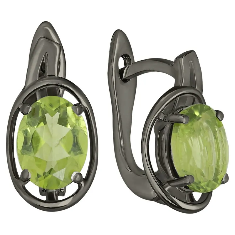 Серебряные серьги с натуральным хризолитом - коллекция Фрейя, покрытие Черный Родий. Средний вес украшения с камнем составляет 3.4 гр. Месторождение(я): Хризолит (Якутия, Россия).