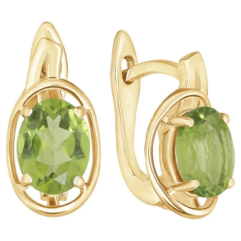 Серебряные серьги с натуральным хризолитом - коллекция Фрейя. Серебряные серьги 925 пробы с покрытием желтое золото. Цвет покрытия соответствует швейцарскому цветовому стандарту NIHS -FF24ct и цвету чистого золото 999.99. На последней фотографии мы разместили сравнительную фотографию 3 цвета золотого покрытия. Помимо предания золотого цвета Вашему изделию, тонкий слой золота защищает от окисления. Для более стойкого эффекта золочения и долговечности покрытия мы дополнительно наносим подслой палладия (Pd). Средний вес изделия с камнем составляет 3.4 гр. Месторождение(я): Хризолит (Якутия, Россия). Хризолит (Натуральный) овал 6*8 мм., средний вес: 1.34 карат. Все изделия собственного производства. Гарантия 12 месяцев.Арт. 7757. Хризолит – камень, который называют «вечерним изумрудом» за удивительную способность менять цвет в зависимости от освещения. Считается, что хризолит очень любила Клеопатра. Хризолитовый порошок используется для общего восстановления организма, для очищения пищи от ядов и токсинов и улучшения работы ЖКТ. Кроме того, минерал защищает от опасностей и укрепляет дружеские отношения.
