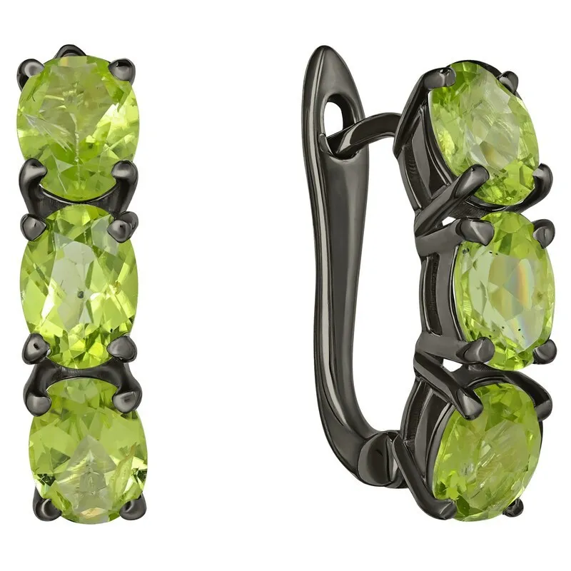 Серебряные серьги с натуральным хризолитом - коллекция Муза, покрытие Черный Родий.