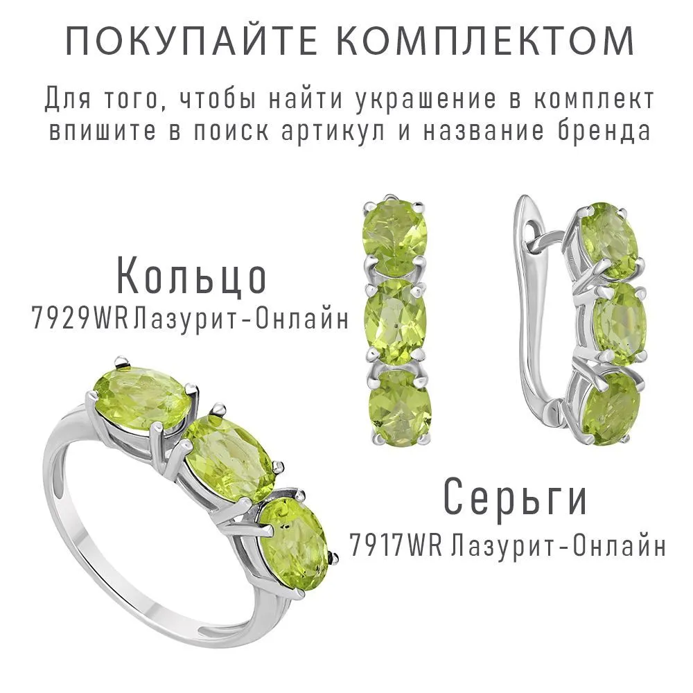 Серебряные серьги с натуральным хризолитом - коллекция Муза. Средний вес изделия с камнями 2.39 гр. Месторождение(я): Хризолит (Якутия, Россия) Хризолит (Натуральный) овал 5*7 мм., средний вес: 0,85 карат. Размер лицевой части: 5*21 мм. Все изделия собственного производства. Гарантия 12 месяцев.Арт. 7917. Хризолит – камень, который называют «вечерним изумрудом» за удивительную способность менять цвет в зависимости от освещения. Считается, что хризолит очень любила Клеопатра. Хризолитовый порошок используется для общего восстановления организма, для очищения пищи от ядов и токсинов и улучшения работы ЖКТ. Кроме того, минерал защищает от опасностей и укрепляет дружеские отношения.