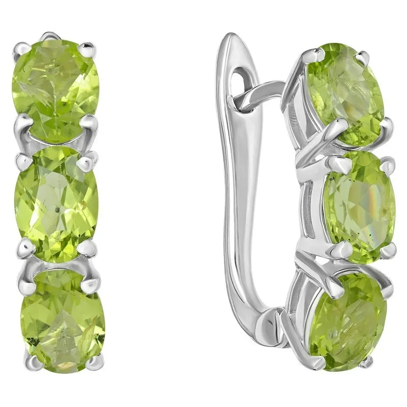 Серебряные серьги с натуральным хризолитом - коллекция Муза / покрытие Белый Родий