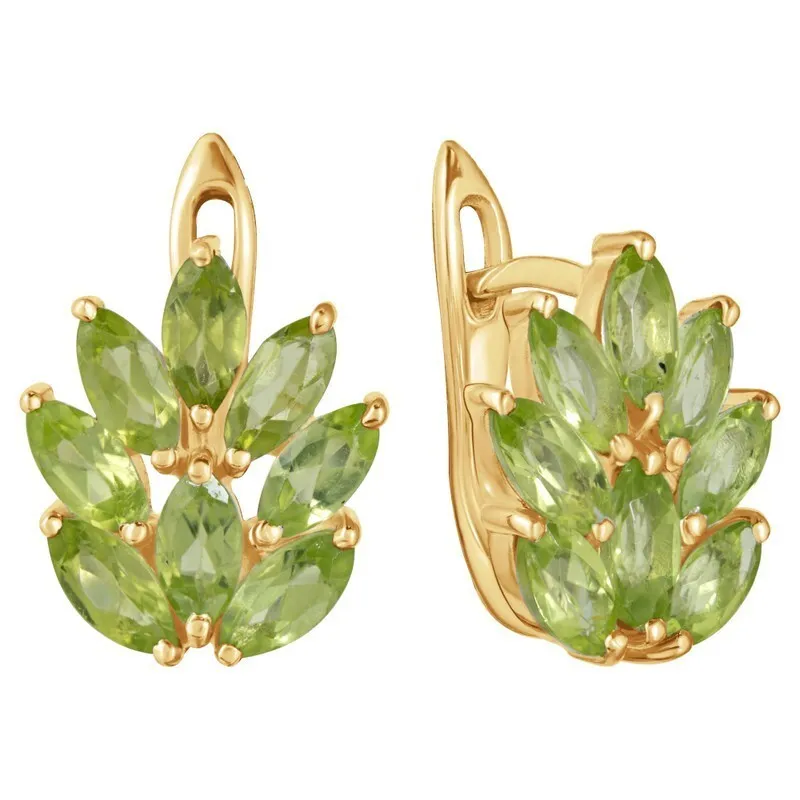 Серебряные серьги с натуральным хризолитом - коллекция Искра. Серебряные серьги 925 пробы с покрытием желтое золото. Цвет покрытия соответствует швейцарскому цветовому стандарту NIHS -FF24ct и цвету чистого золото 999.99. На последней фотографии мы разместили сравнительную фотографию 3 цвета золотого покрытия. Помимо предания золотого цвета Вашему изделию, тонкий слой золота защищает от окисления. Для более стойкого эффекта золочения и долговечности покрытия мы дополнительно наносим подслой палладия (Pd). Средний вес изделия с камнями 4.29 гр. Месторождение: Хризолит (Якутия, Россия) Хризолит (Натуральный) маркиз 3*6 мм., средний вес: 0.32 карат. Все изделия собственного производства. Гарантия 12 месяцев.Арт. 8144. Хризолит – камень, который называют «вечерним изумрудом» за удивительную способность менять цвет в зависимости от освещения. Считается, что хризолит очень любила Клеопатра. Хризолитовый порошок используется для общего восстановления организма, для очищения пищи от ядов и токсинов и улучшения работы ЖКТ. Кроме того, минерал защищает от опасностей и укрепляет дружеские отношения.