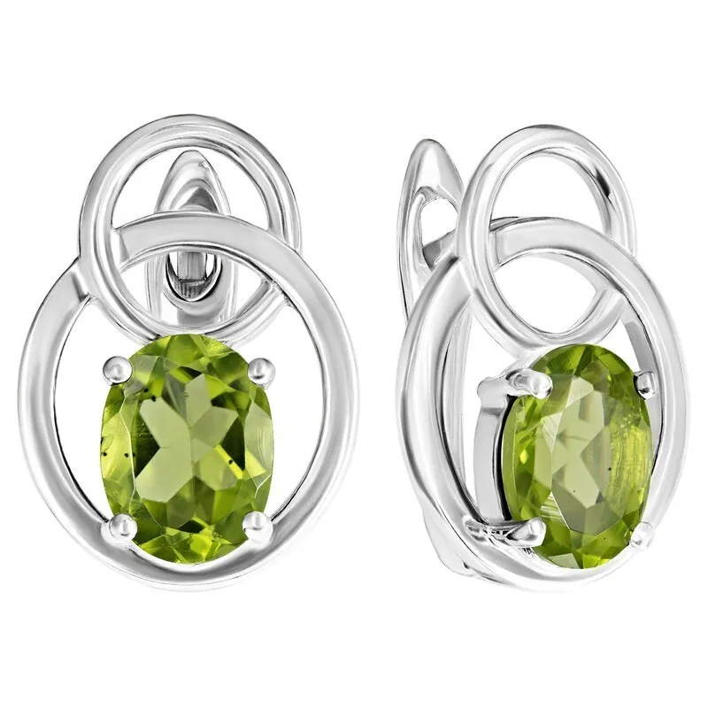 Серебряные серьги с натуральным хризолитом - коллекция Юнона. Средний вес изделия с камнями 4.19 гр. Месторождение: Хризолит (Якутия, Россия). Хризолит (Натуральный) овал 6*8 мм., средний вес: 1.38 карат. Все изделия собственного производства. Гарантия 12 месяцев.Арт. 8397. Хризолит – камень, который называют «вечерним изумрудом» за удивительную способность менять цвет в зависимости от освещения. Считается, что хризолит очень любила Клеопатра. Хризолитовый порошок используется для общего восстановления организма, для очищения пищи от ядов и токсинов и улучшения работы ЖКТ. Кроме того, минерал защищает от опасностей и укрепляет дружеские отношения.