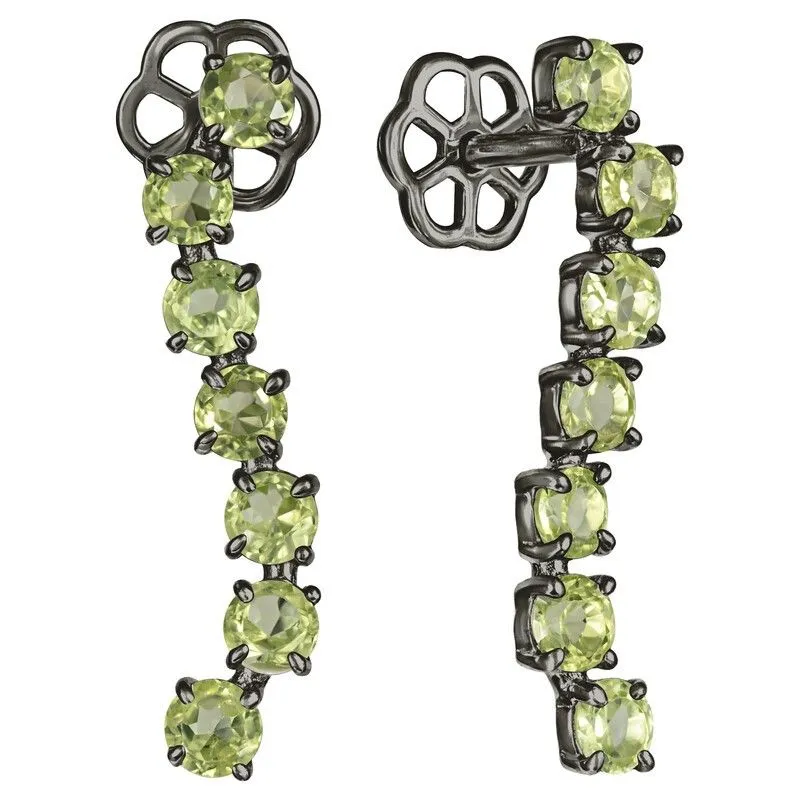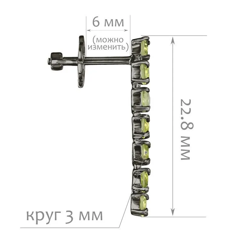 Серебряные серьги с натуральным хризолитом - коллекция Волна / покрытие Черный Родий.Средний вес украшения с камнями 1.71 гр.Месторождение: Хризолит (Якутия, Россия)Ювелирные вставки:Хризолит (Натуральный) круг 3 мм., средний вес: 0.84 карат.Все изделия собственного производства и имеют гарантию 12 месяцев. Арт. 8740BR . Хризолит – камень, который называют «вечерним изумрудом» за удивительную способность менять цвет в зависимости от освещения. Считается, что хризолит очень любила Клеопатра. Хризолитовый порошок используется для общего восстановления организма, для очищения пищи от ядов и токсинов и улучшения работы ЖКТ. Кроме того, минерал защищает от опасностей и укрепляет дружеские отношения.