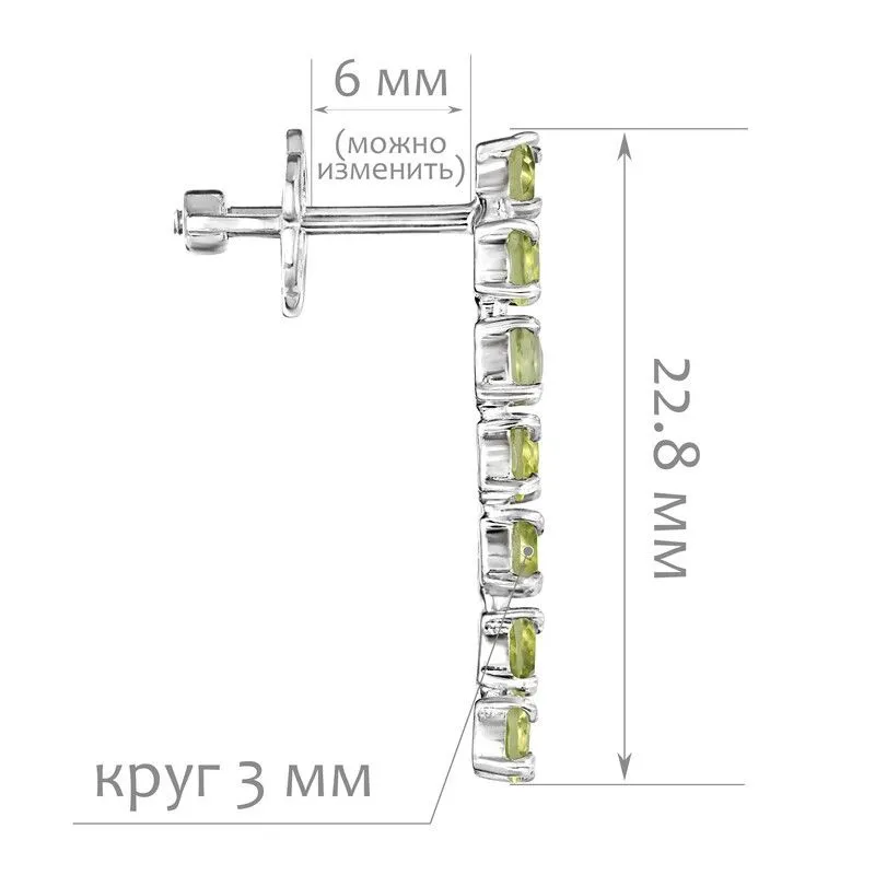 Серебряные серьги с натуральным хризолитом - коллекция Волна / Без покрытия.Средний вес украшения с камнями 1.85 гр.Месторождение: Хризолит (Якутия, Россия)Ювелирные вставки:Хризолит (Натуральный) круг 3 мм., средний вес: 0.72 карат.Все изделия собственного производства и имеют гарантию 12 месяцев. Арт. 8740NP . Хризолит – камень, который называют «вечерним изумрудом» за удивительную способность менять цвет в зависимости от освещения. Считается, что хризолит очень любила Клеопатра. Хризолитовый порошок используется для общего восстановления организма, для очищения пищи от ядов и токсинов и улучшения работы ЖКТ. Кроме того, минерал защищает от опасностей и укрепляет дружеские отношения.
