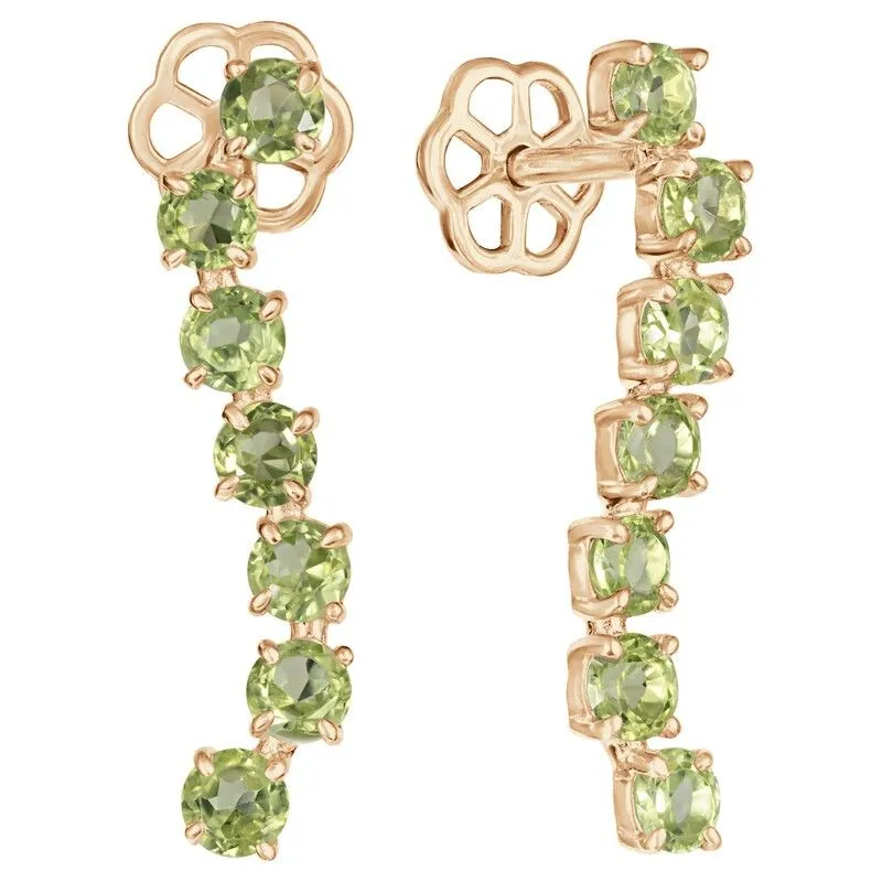 Серебряные серьги с натуральным хризолитом - коллекция Волна / покрытие Розовое Золото.Средний вес украшения с камнями 1.85 гр.Месторождение: Хризолит (Якутия, Россия)Ювелирные вставки:Хризолит (Натуральный) круг 3 мм., средний вес: 0.41 карат.Все изделия собственного производства и имеют гарантию 12 месяцев. Арт. 8740PG . Хризолит – камень, который называют «вечерним изумрудом» за удивительную способность менять цвет в зависимости от освещения. Считается, что хризолит очень любила Клеопатра. Хризолитовый порошок используется для общего восстановления организма, для очищения пищи от ядов и токсинов и улучшения работы ЖКТ. Кроме того, минерал защищает от опасностей и укрепляет дружеские отношения.