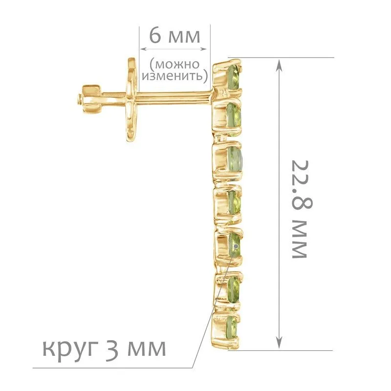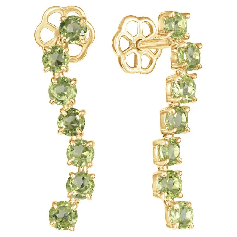Серебряные серьги с натуральным хризолитом - коллекция Волна / покрытие Желтое Золото.Средний вес украшения с камнями 1.74 гр.Месторождение: Хризолит (Якутия, Россия)Ювелирные вставки:Хризолит (Натуральный) круг 3 мм., средний вес: 0.38 карат.Все изделия собственного производства и имеют гарантию 12 месяцев. Арт. 8740YG . Хризолит – камень, который называют «вечерним изумрудом» за удивительную способность менять цвет в зависимости от освещения. Считается, что хризолит очень любила Клеопатра. Хризолитовый порошок используется для общего восстановления организма, для очищения пищи от ядов и токсинов и улучшения работы ЖКТ. Кроме того, минерал защищает от опасностей и укрепляет дружеские отношения.