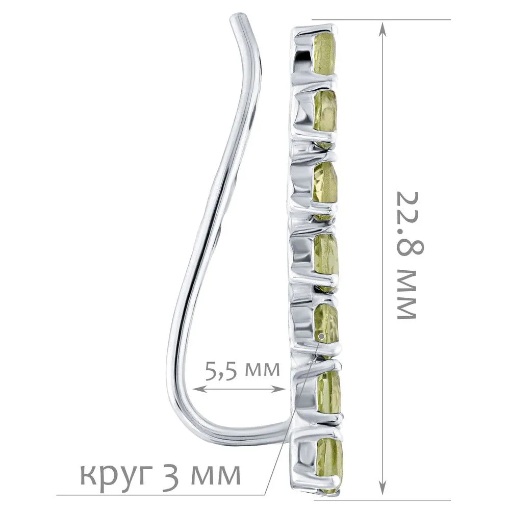 Серебряные серьги каффы с натуральным хризолитом - коллекция Волна / покрытие Чистое Серебро.Средний вес украшения с камнями 1.75 гр.Месторождение: Хризолит (Якутия, Россия)Ювелирные вставки:Хризолит (Натуральный) круг 3 мм., средний вес: 0.75 карат.Все изделия собственного производства и имеют гарантию 12 месяцев. Арт. 8752AG . Хризолит – камень, который называют «вечерним изумрудом» за удивительную способность менять цвет в зависимости от освещения. Считается, что хризолит очень любила Клеопатра. Хризолитовый порошок используется для общего восстановления организма, для очищения пищи от ядов и токсинов и улучшения работы ЖКТ. Кроме того, минерал защищает от опасностей и укрепляет дружеские отношения.