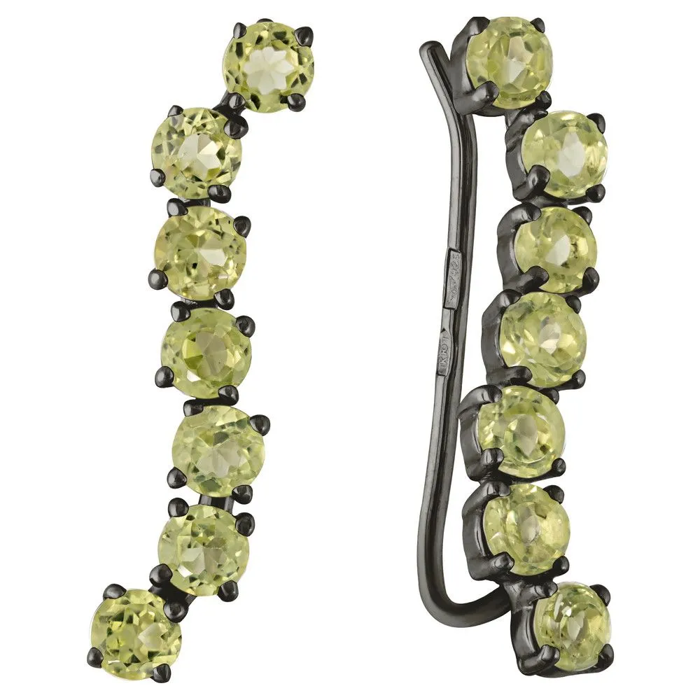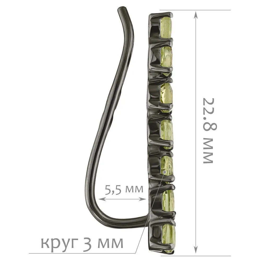 Серебряные серьги каффы с натуральным хризолитом - коллекция Волна / покрытие Черный Родий.Средний вес украшения с камнями 1.77 гр.Месторождение: Хризолит (Якутия, Россия)Ювелирные вставки:Хризолит (Натуральный) круг 3 мм., средний вес: 0.58 карат.Все изделия собственного производства и имеют гарантию 12 месяцев. Арт. 8752BR . Хризолит – камень, который называют «вечерним изумрудом» за удивительную способность менять цвет в зависимости от освещения. Считается, что хризолит очень любила Клеопатра. Хризолитовый порошок используется для общего восстановления организма, для очищения пищи от ядов и токсинов и улучшения работы ЖКТ. Кроме того, минерал защищает от опасностей и укрепляет дружеские отношения.
