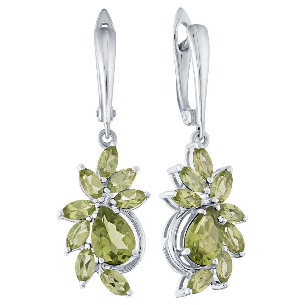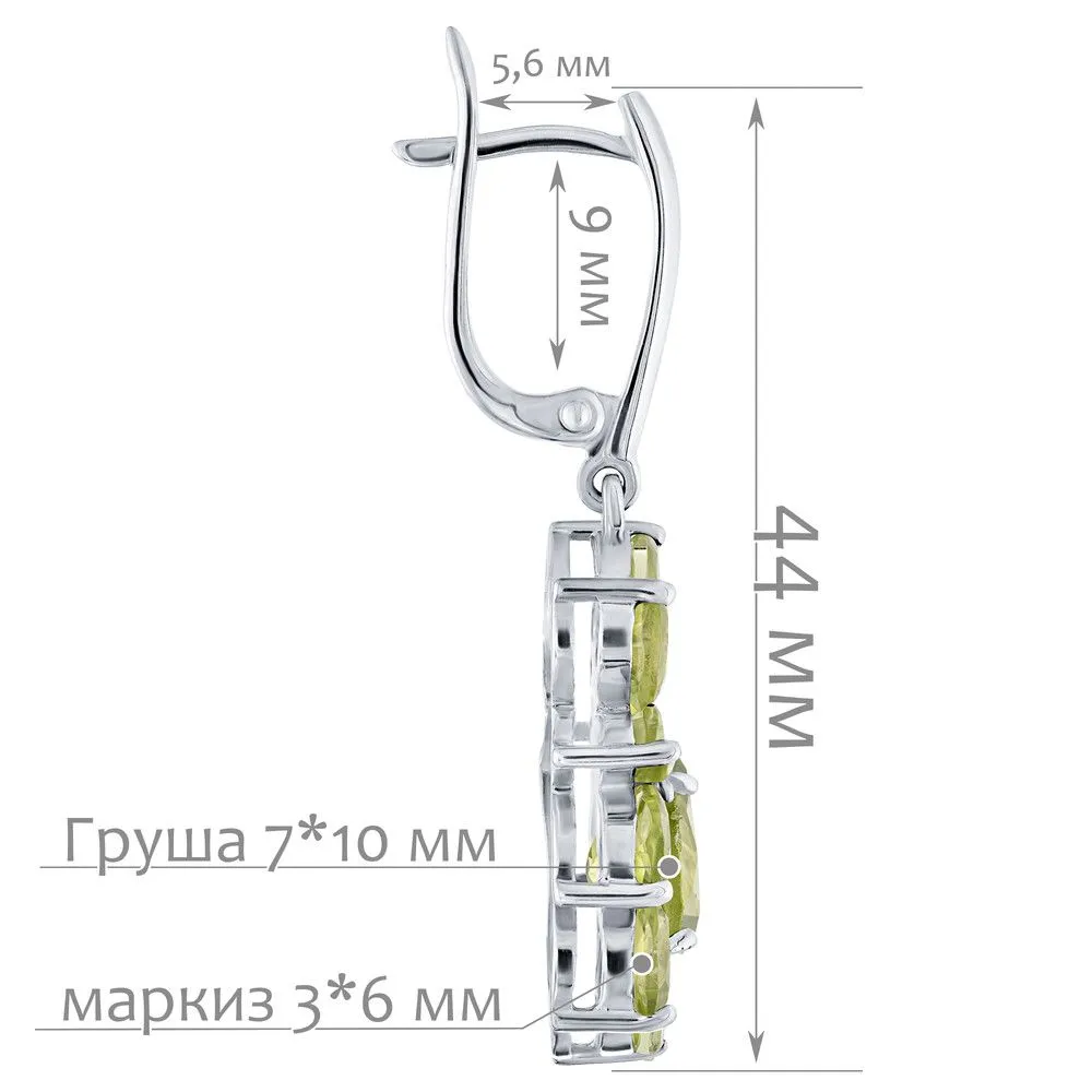 Серебряные серьги с натуральным хризолитом - коллекция Элегия / покрытие Чистое Серебро. Средний вес украшения с камнями 7.88 гр. Месторождение: Хризолит (Якутия, Россия) Ювелирные вставки: Хризолит (Натуральный) груша 7*10 мм., средний вес: 1.89 карат. Хризолит (Натуральный) маркиз 3*6 мм., средний вес: 0.25 карат. Все изделия собственного производства и имеют гарантию 12 месяцев. Арт. 8784AG . Хризолит – камень, который называют «вечерним изумрудом» за удивительную способность менять цвет в зависимости от освещения. Считается, что хризолит очень любила Клеопатра. Хризолитовый порошок используется для общего восстановления организма, для очищения пищи от ядов и токсинов и улучшения работы ЖКТ. Кроме того, минерал защищает от опасностей и укрепляет дружеские отношения.