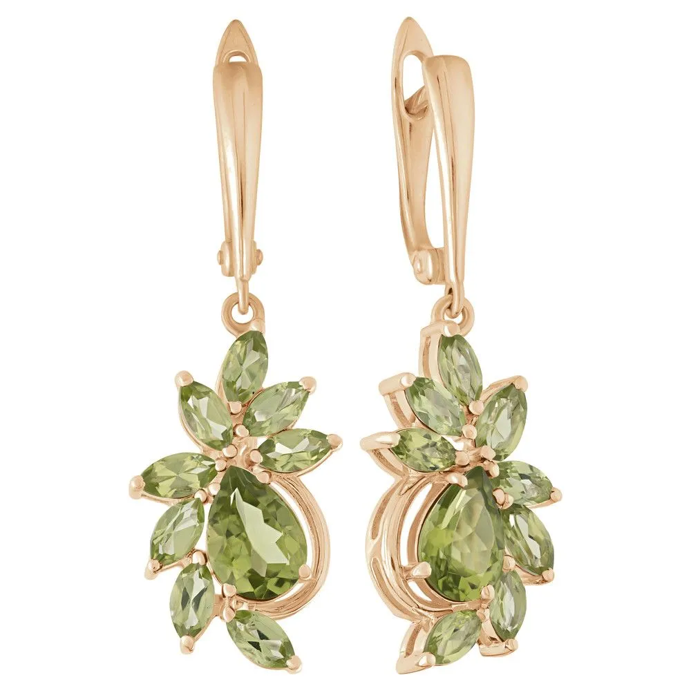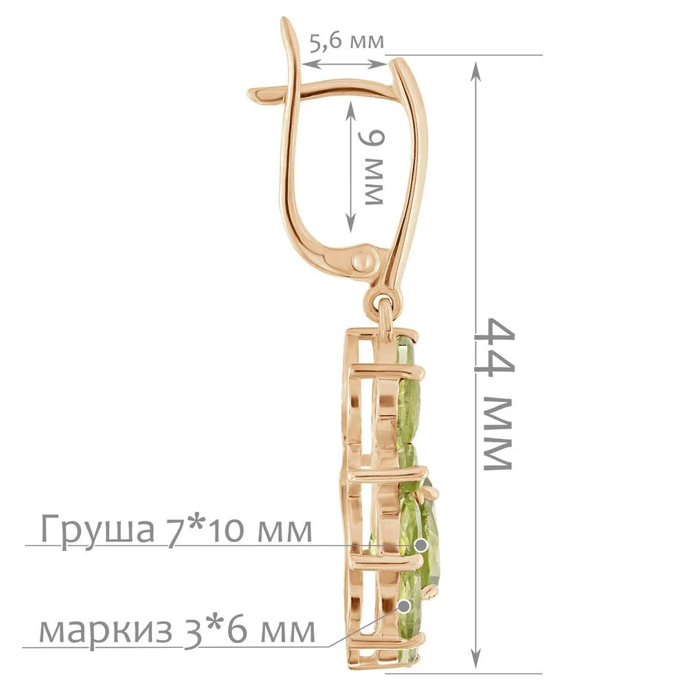 Серебряные серьги с натуральным хризолитом - коллекция Элегия / покрытие Розовое Золото. Средний вес украшения с камнями 7.88 гр. Месторождение: Хризолит (Якутия, Россия) Ювелирные вставки: Хризолит (Натуральный) груша 7*10 мм., средний вес: 1.89 карат. Хризолит (Натуральный) маркиз 3*6 мм., средний вес: 0.25 карат. Все изделия собственного производства и имеют гарантию 12 месяцев. Арт. 8784PG . Хризолит – камень, который называют «вечерним изумрудом» за удивительную способность менять цвет в зависимости от освещения. Считается, что хризолит очень любила Клеопатра. Хризолитовый порошок используется для общего восстановления организма, для очищения пищи от ядов и токсинов и улучшения работы ЖКТ. Кроме того, минерал защищает от опасностей и укрепляет дружеские отношения.