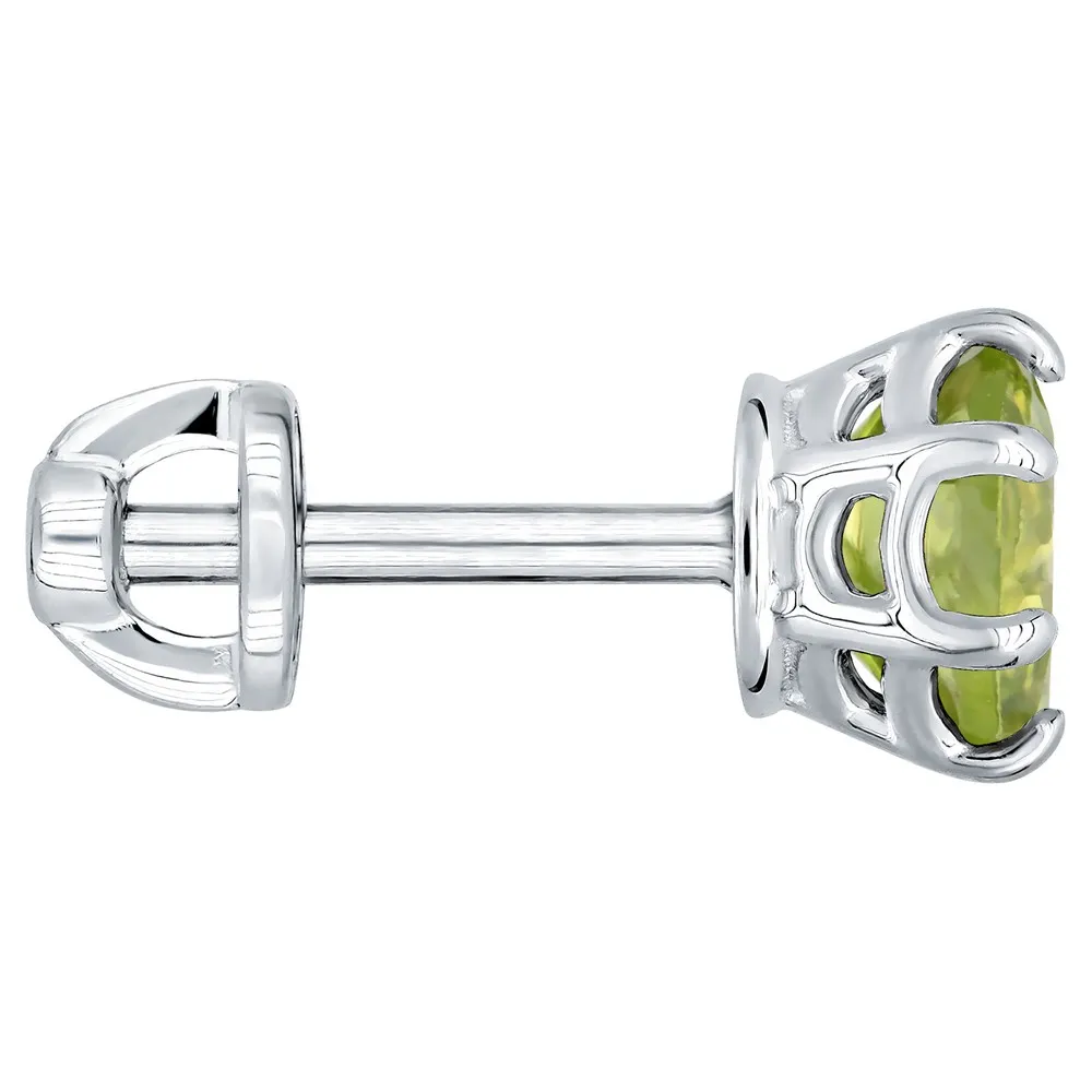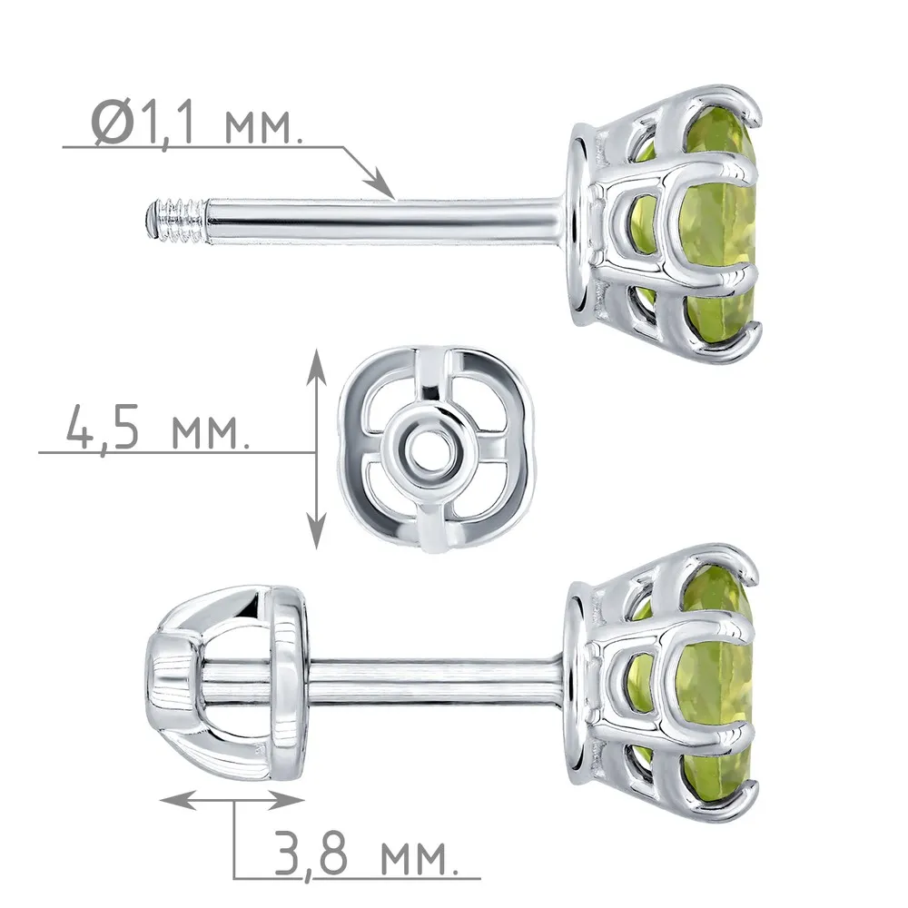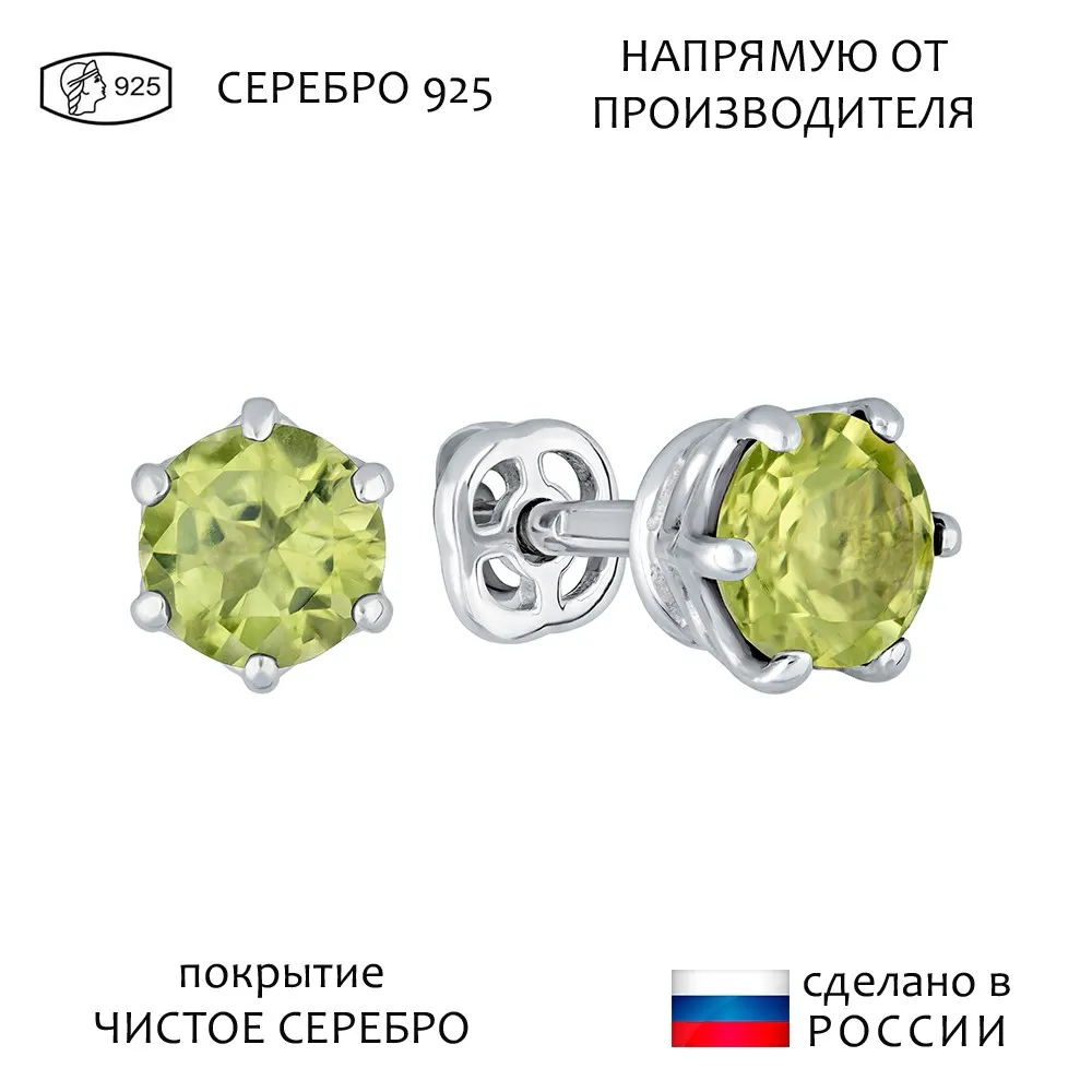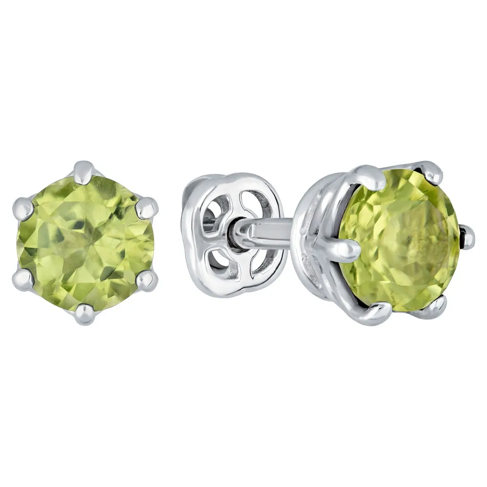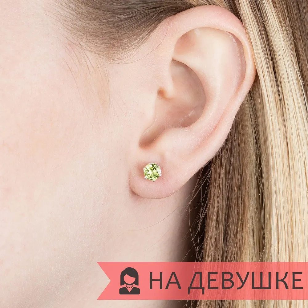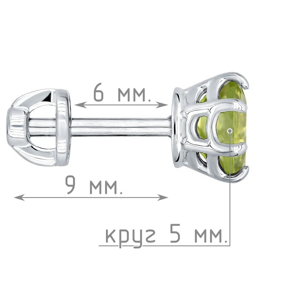 Серебряные серьги гвоздики (пусеты) с натуральным хризолитом 5 мм. / Чистое Серебро.