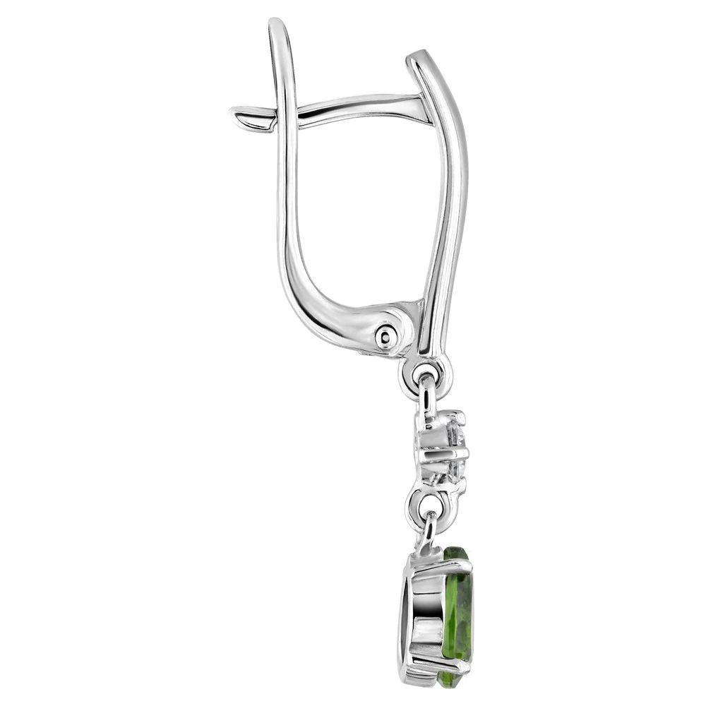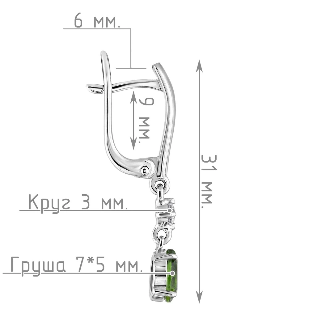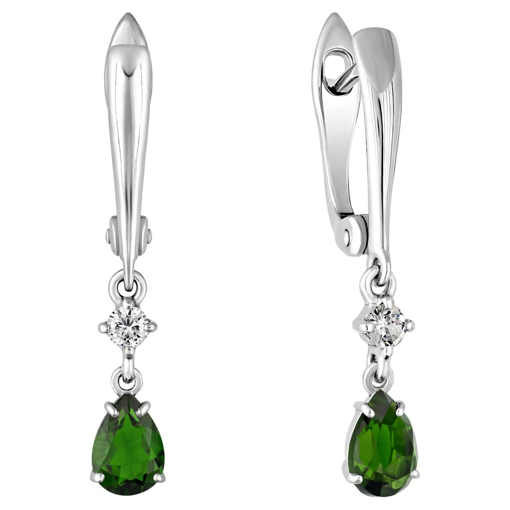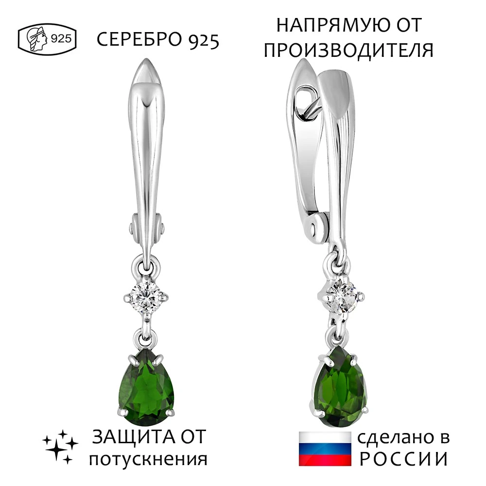 Серебряные серьги с натуральным хромдиопсидом - коллекция Алсу (малая) / Без покрытия.