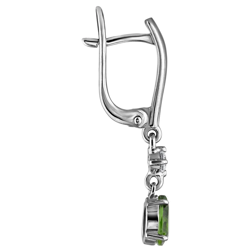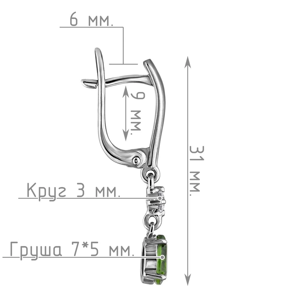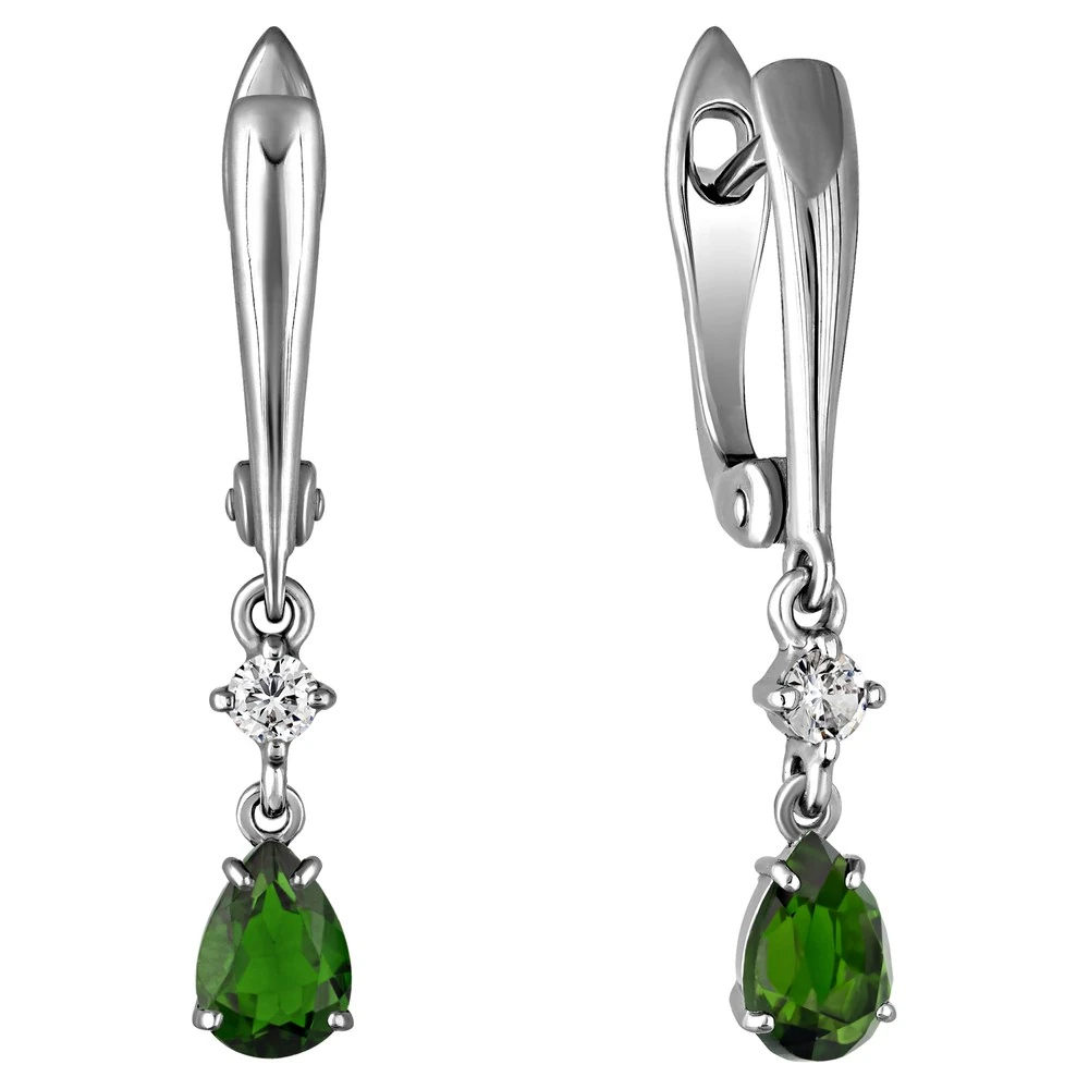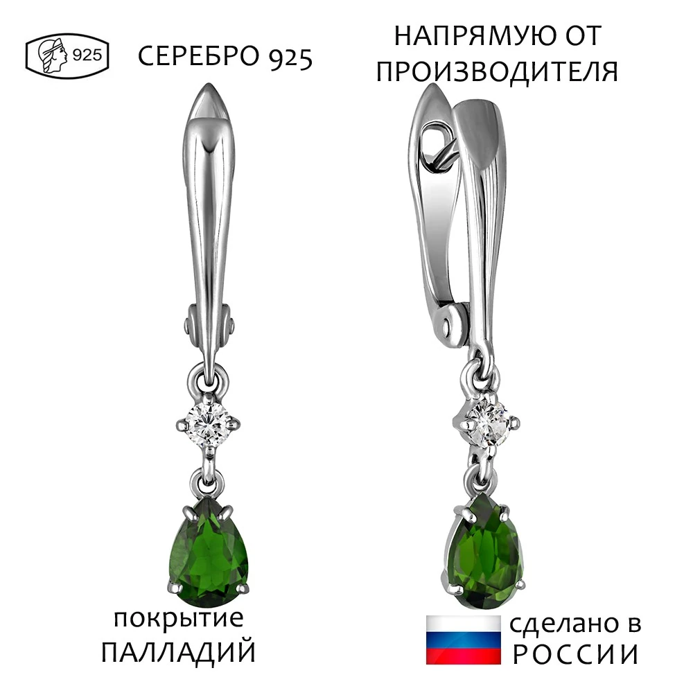 Серебряные серьги с натуральным хромдиопсидом - коллекция Алсу (малая) / Палладий.