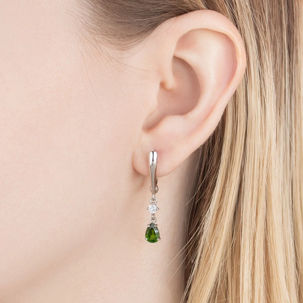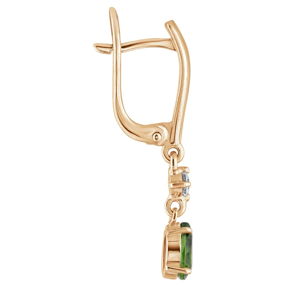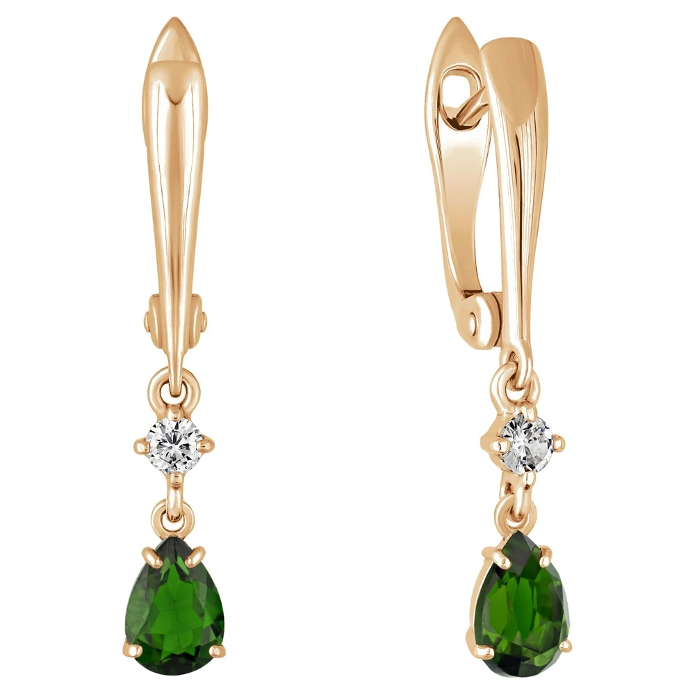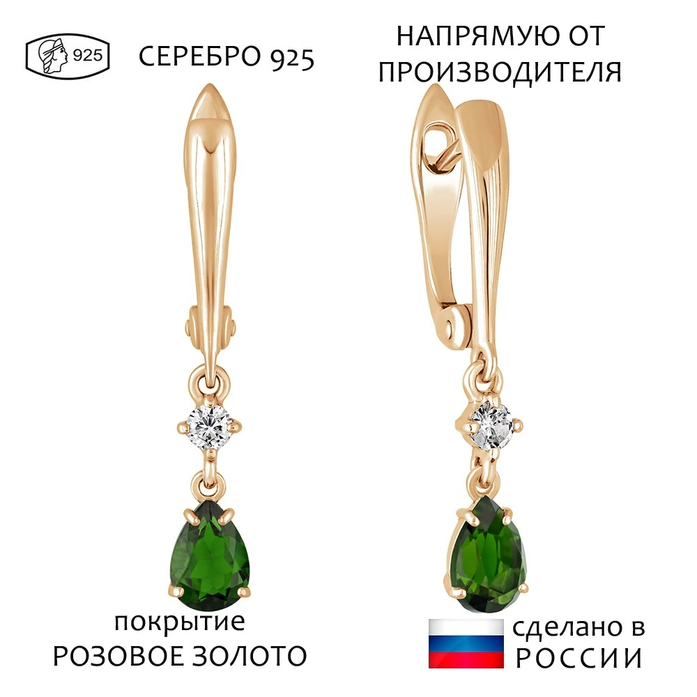 Серебряные серьги с натуральным хромдиопсидом - коллекция Алсу (малая) / Розовое Золото.