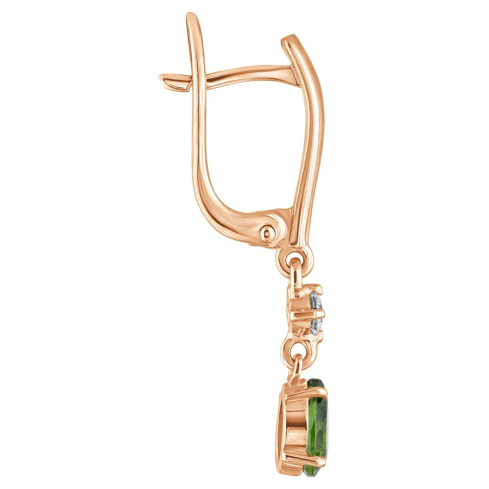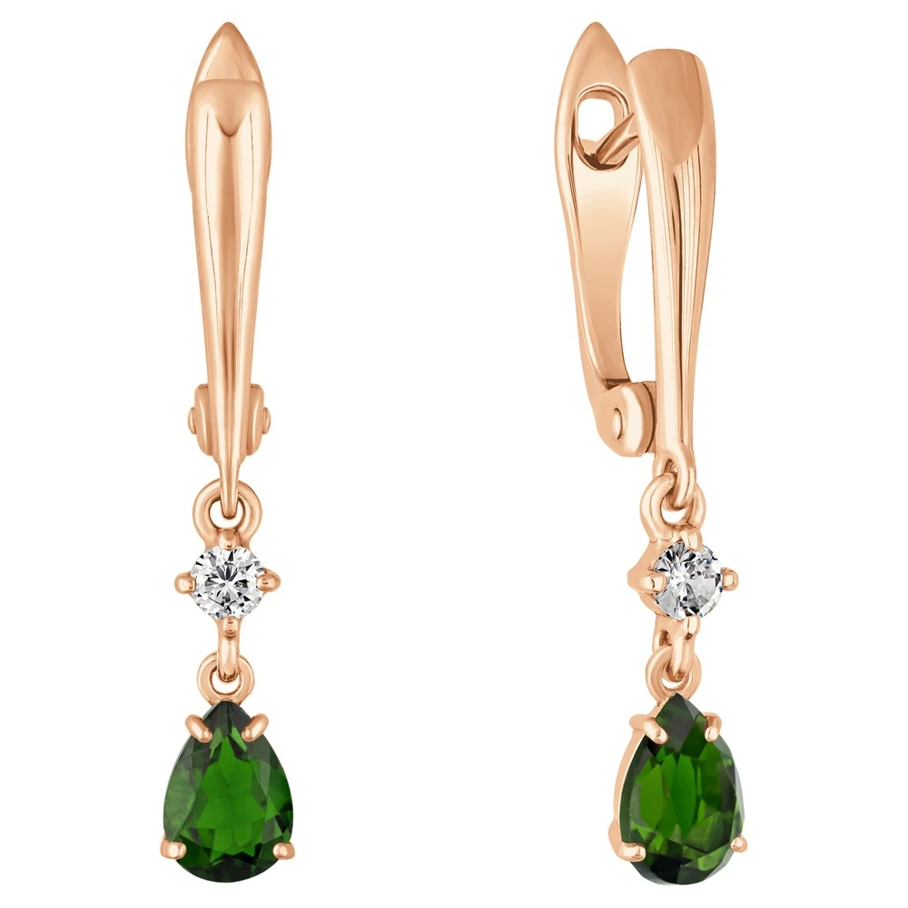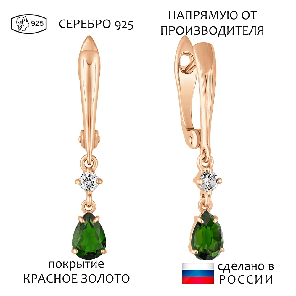 Серебряные серьги с натуральным хромдиопсидом - коллекция Алсу (малая) / Красное золото.
