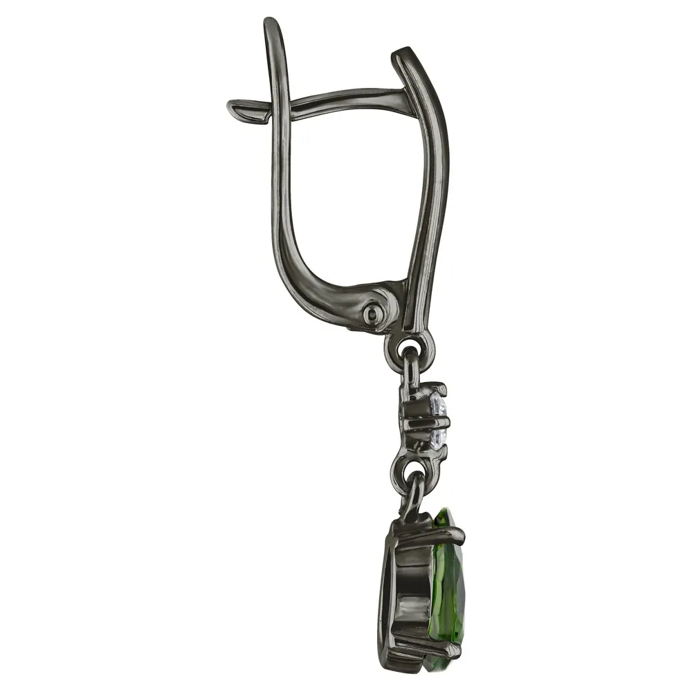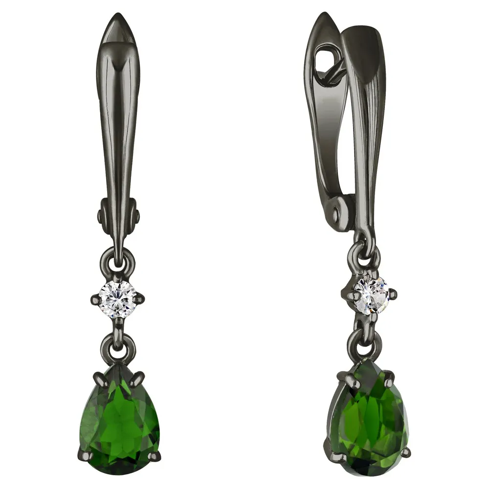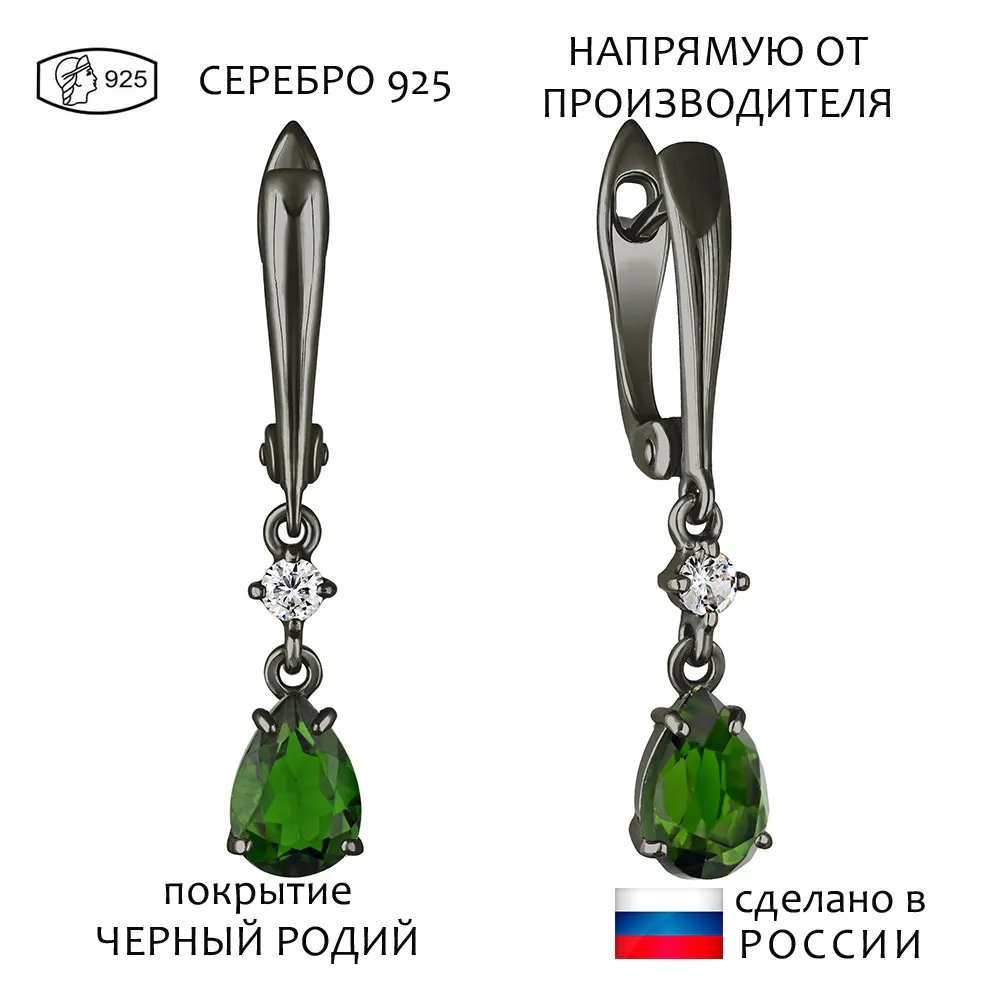Серебряные серьги с натуральным хромдиопсидом - коллекция Алсу (большая) / Черный Родий.