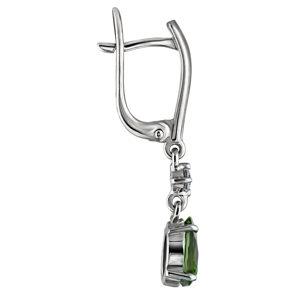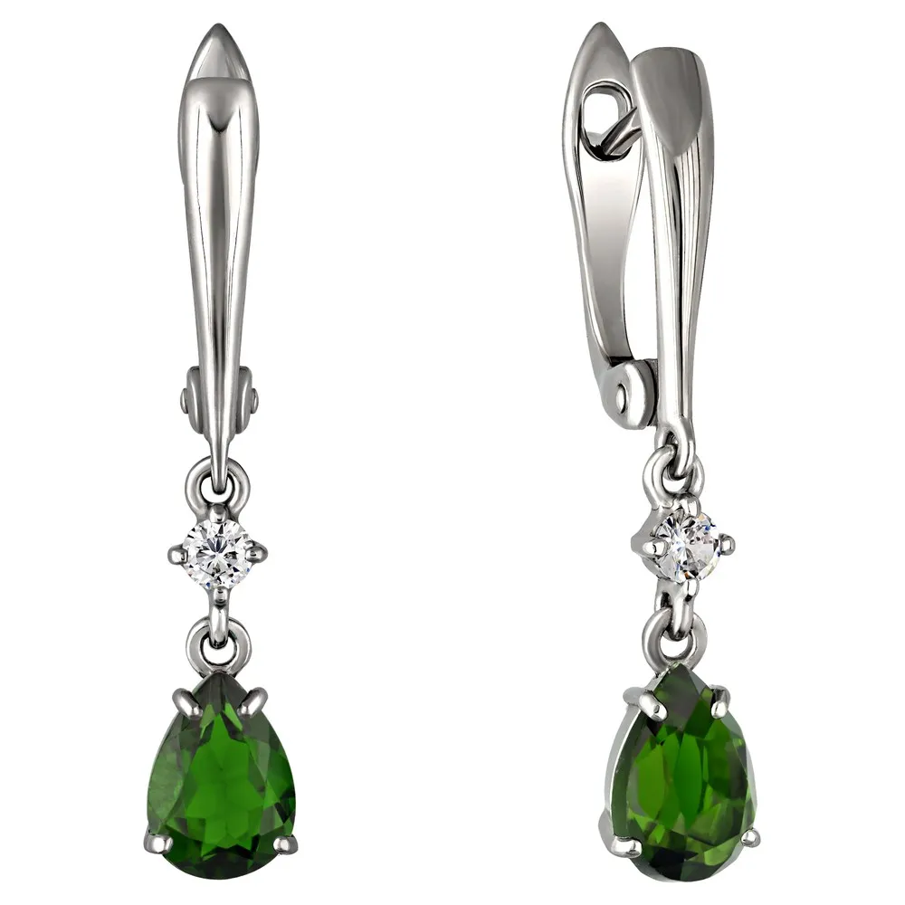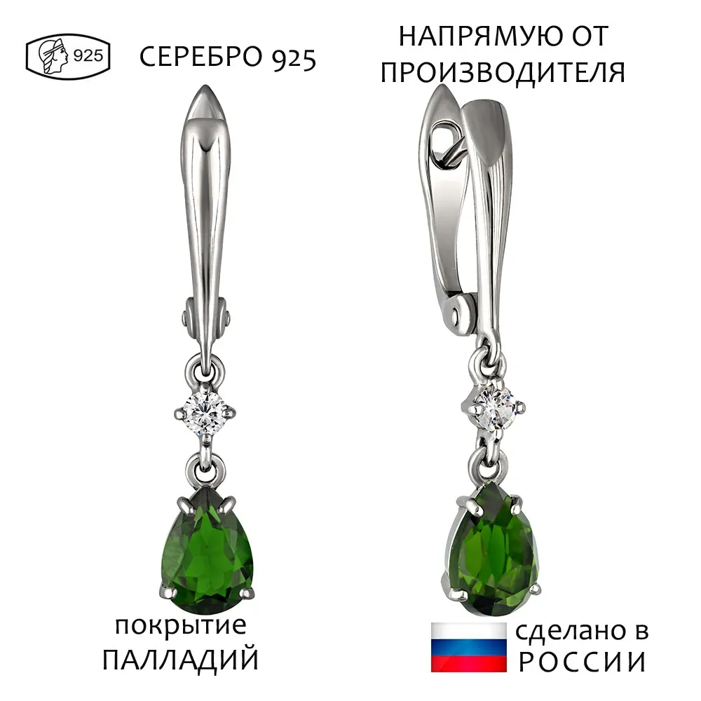 Серебряные серьги с натуральным хромдиопсидом - коллекция Алсу (большая) / Палладий.