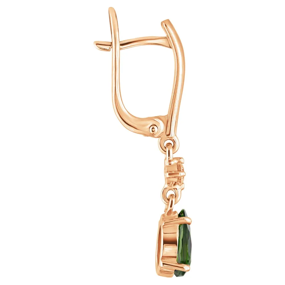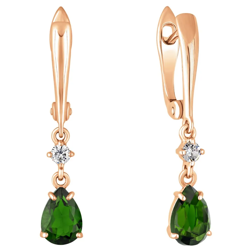 Серебряные серьги с натуральным хромдиопсидом - коллекция Алсу (большая) / Красное золото.