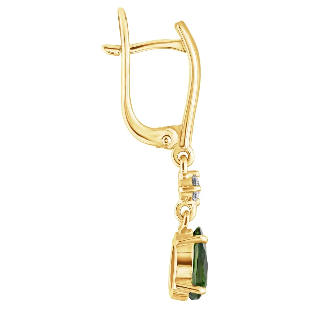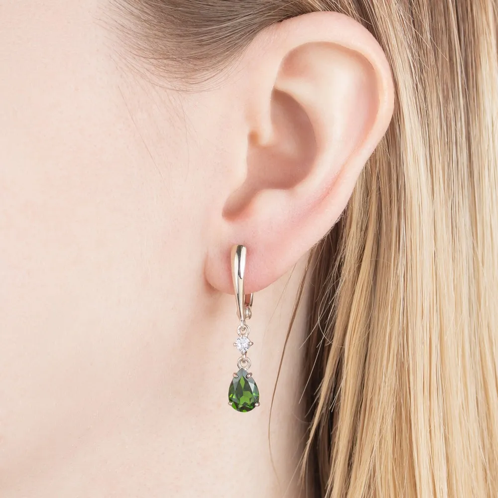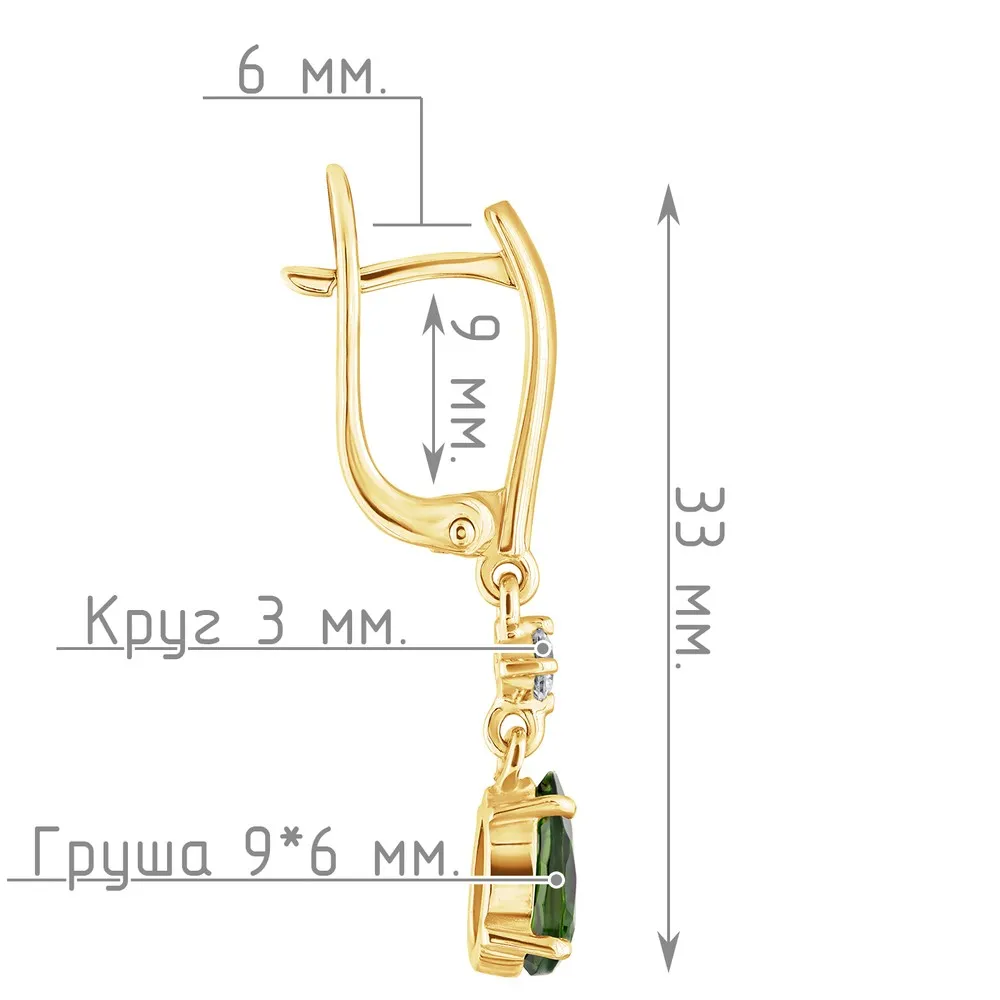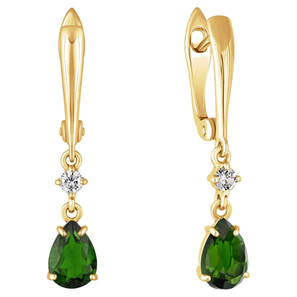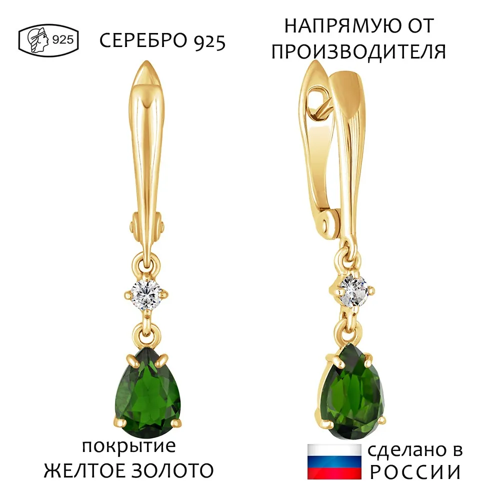 Серебряные серьги с натуральным хромдиопсидом - коллекция Алсу (большая) / Желтое Золото.