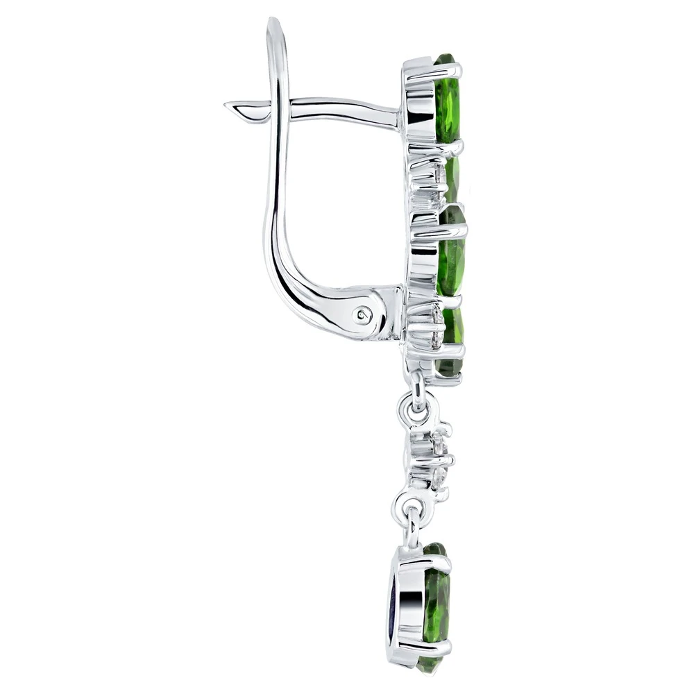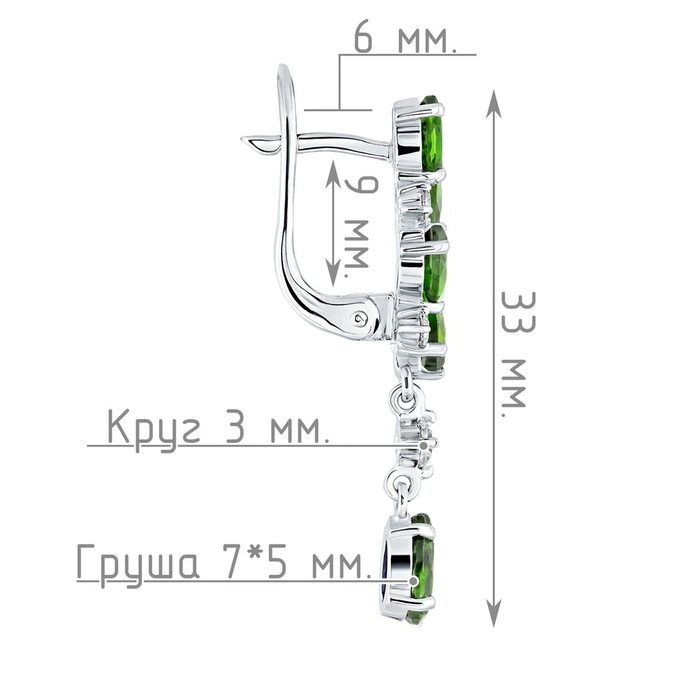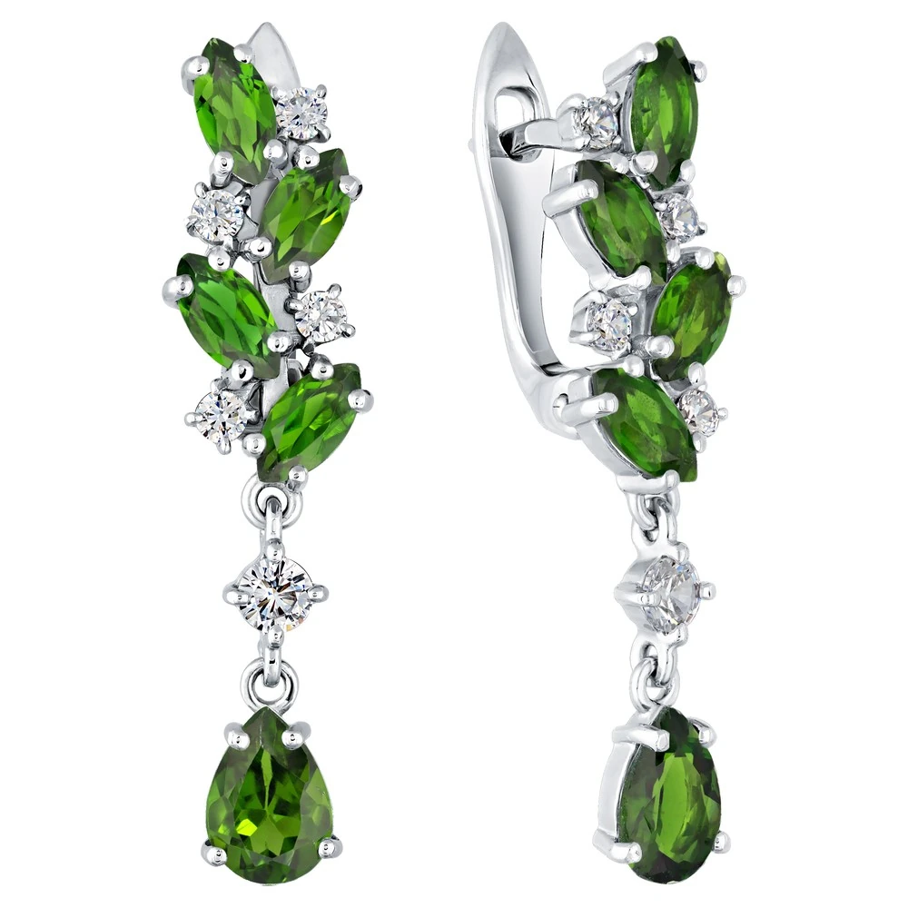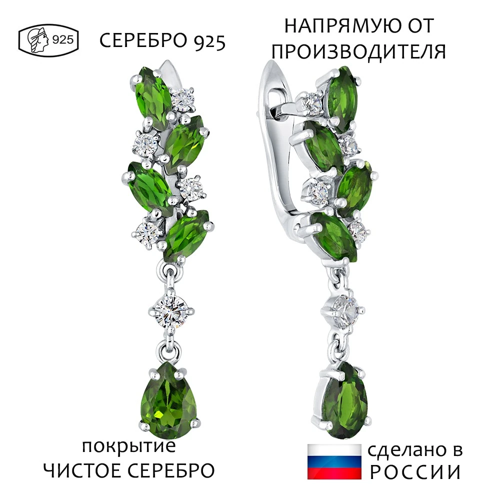 Серебряные серьги с натуральным хромдиопсидом - коллекция Росинка / Чистое Серебро.