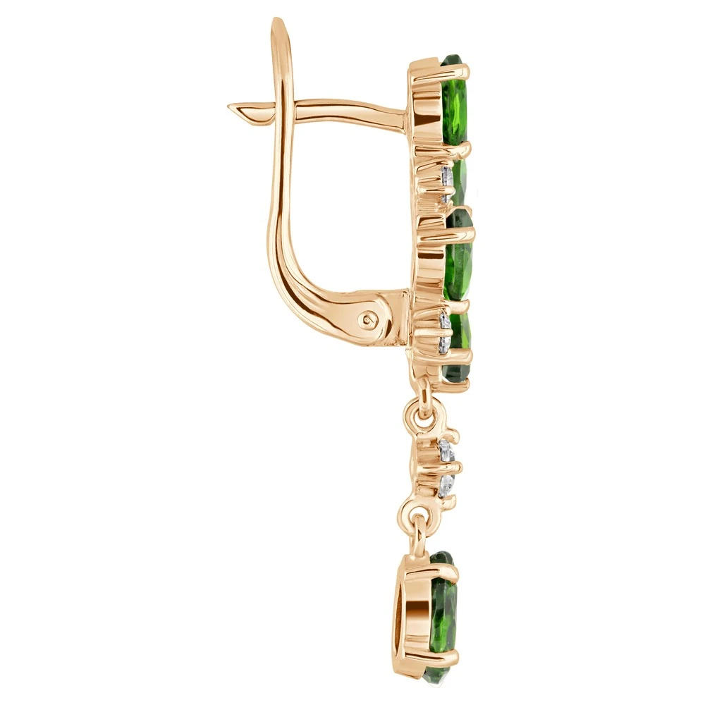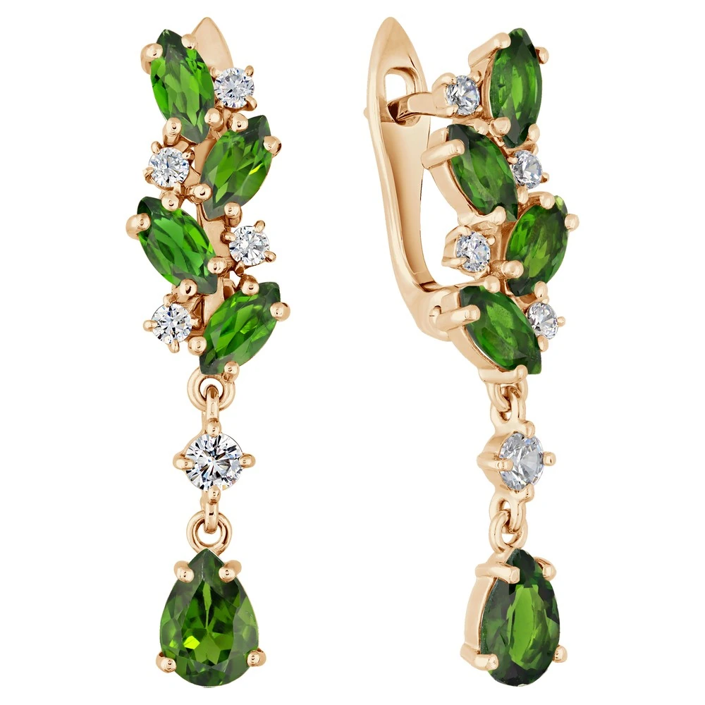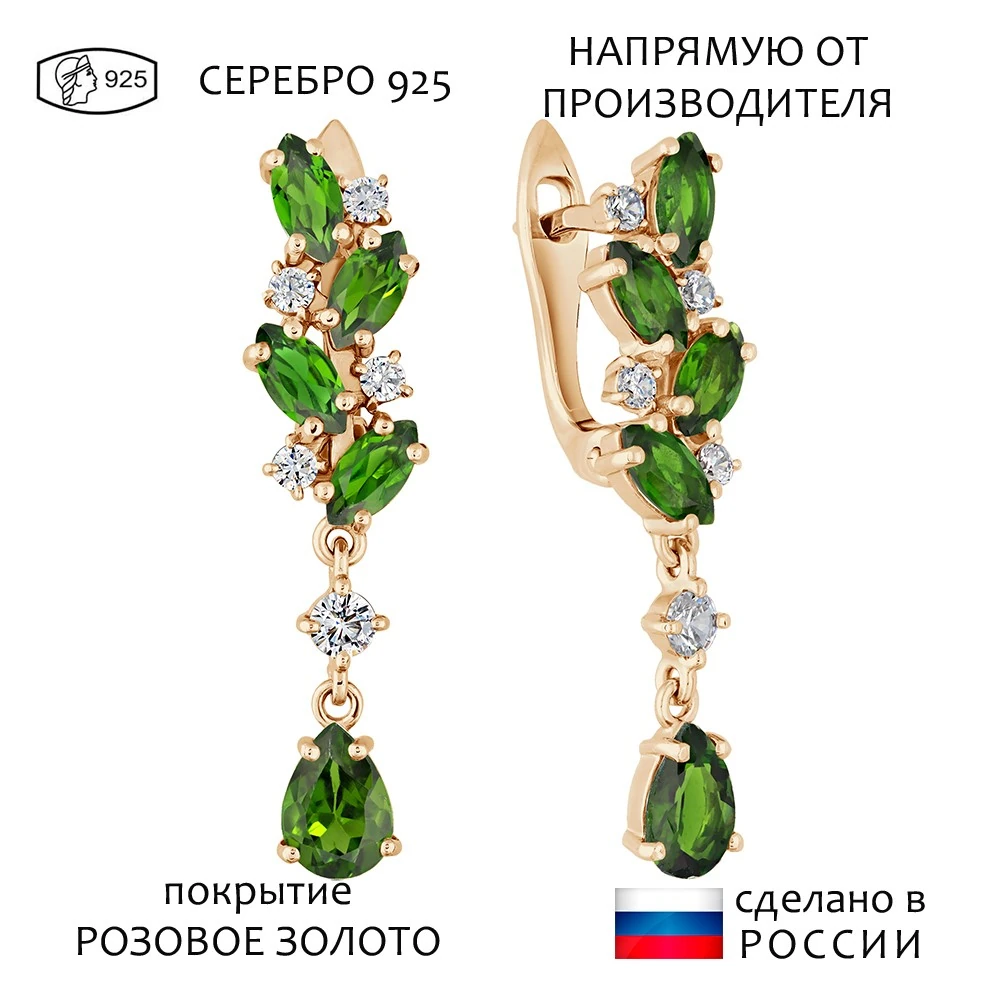 Серебряные серьги с натуральным хромдиопсидом - коллекция Росинка / Розовое Золото.