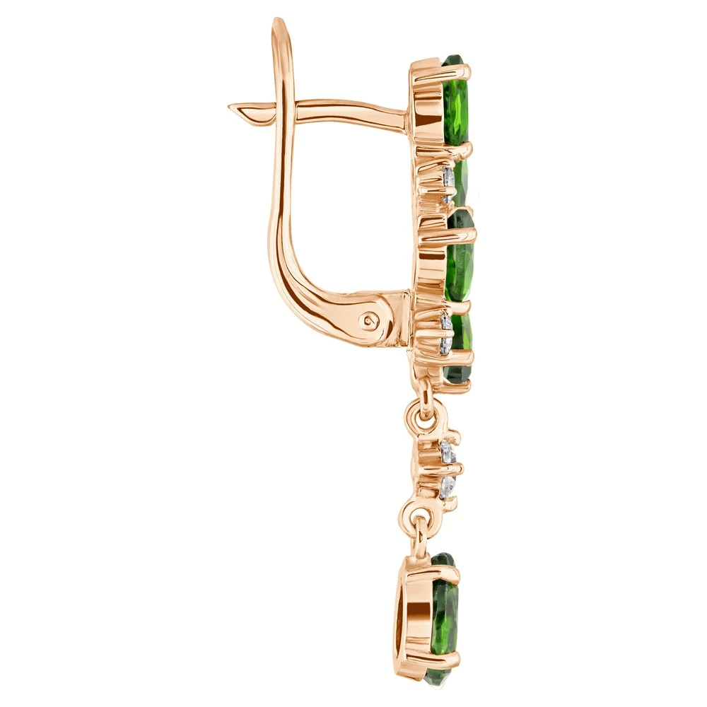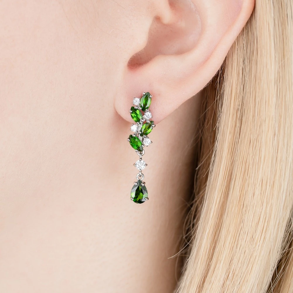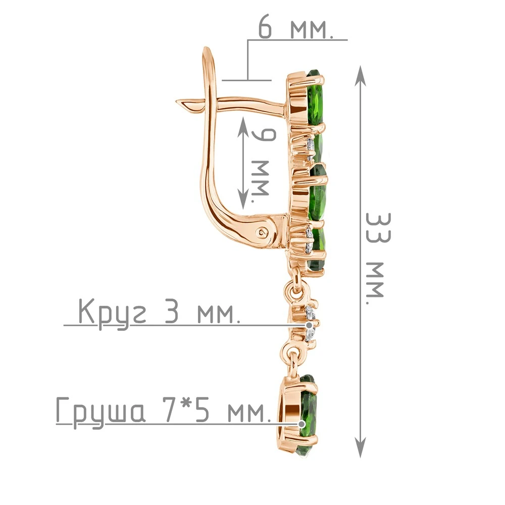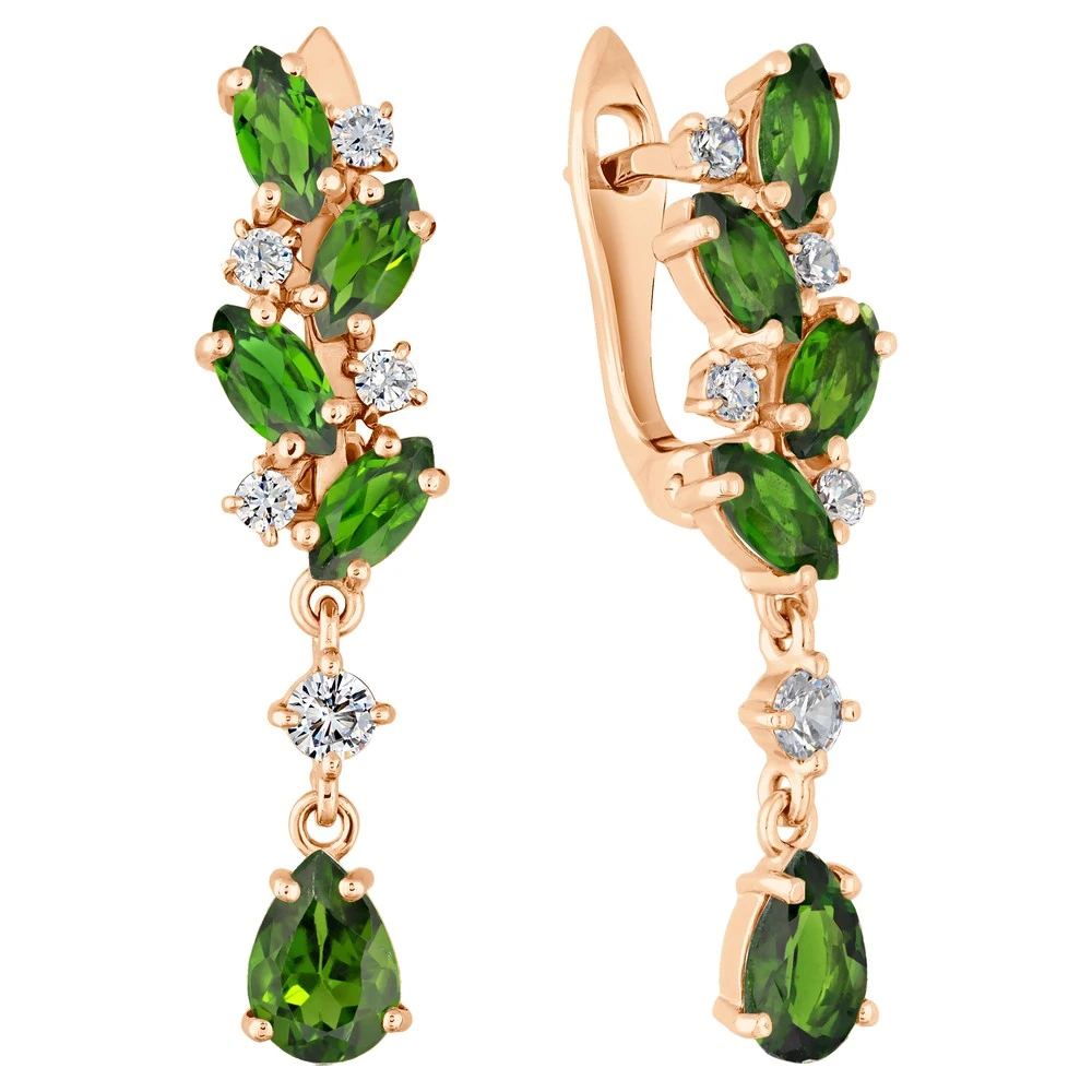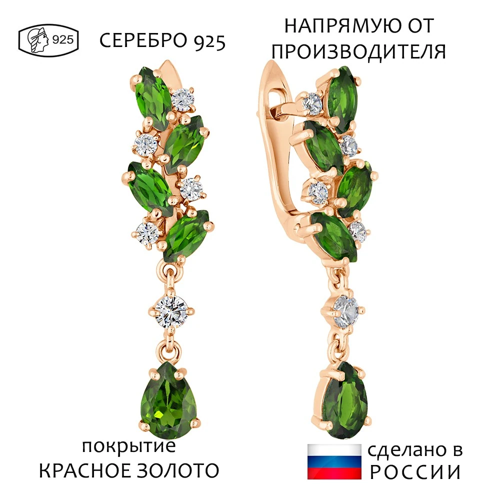 Серебряные серьги с натуральным хромдиопсидом - коллекция Росинка / Красное золото.