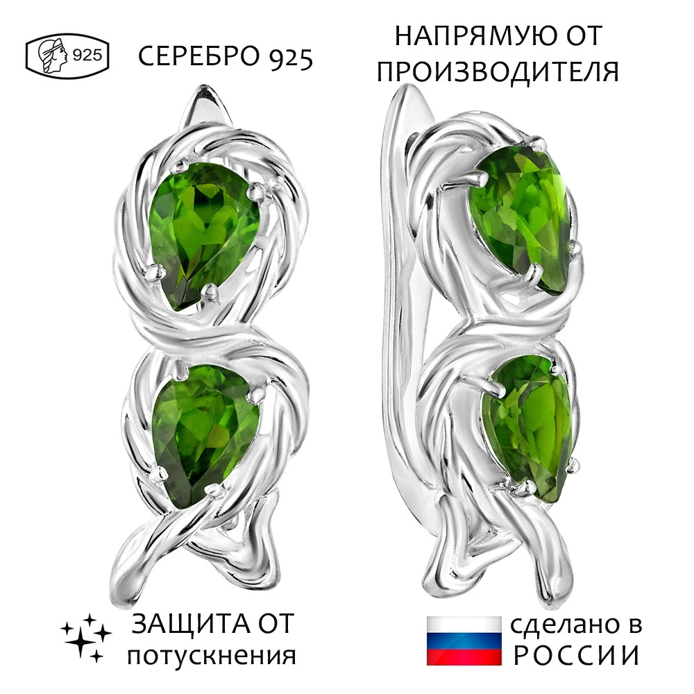 Серебряные серьги с натуральным хромдиопсидом - коллекция Ривьера. Средний вес изделия с камнями 4.71 гр. Месторождение: Хромдиопсид (Якутия, Россия). Хромдиопсид (Натуральный) груша 5*7 мм., средний вес: 0.75 карат. Все изделия собственного производства. Гарантия 12 месяцев.Арт. 8195. Диопсид богат на оттенки, и именно за многоликость получил такое название. Камень очищает энергетическое поле человека от негатива, стимулирует работу сердца. Ценился мистиками и магами за целую гамму положительных качеств.