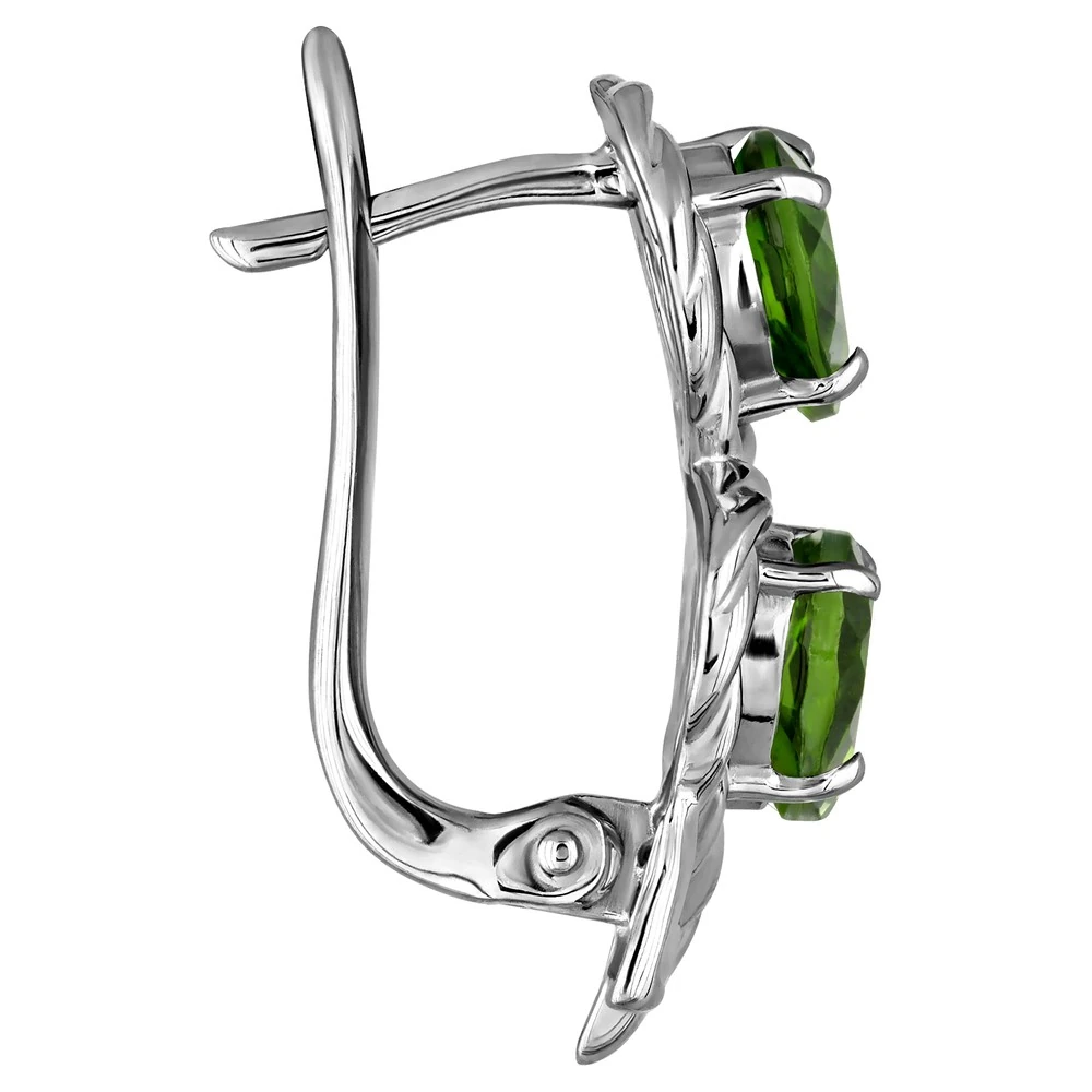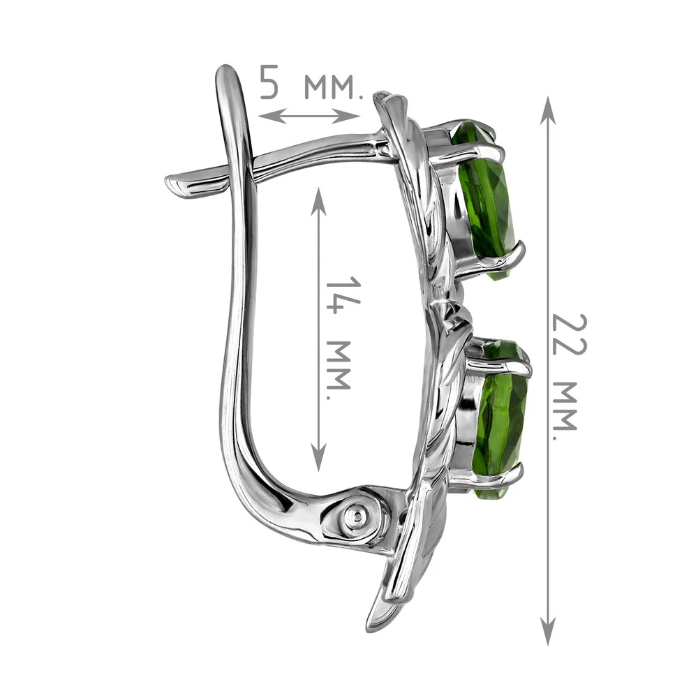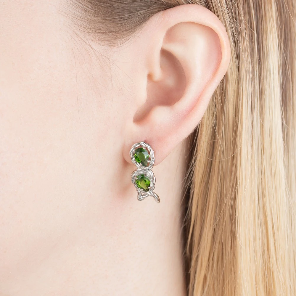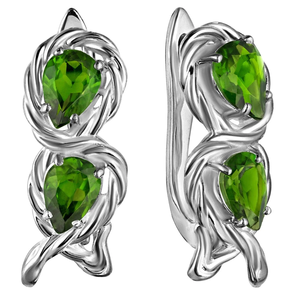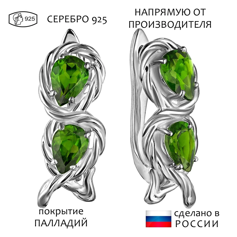 Серебряные серьги с натуральным хромдиопсидом - коллекция Ривьера / покрытие Палладий