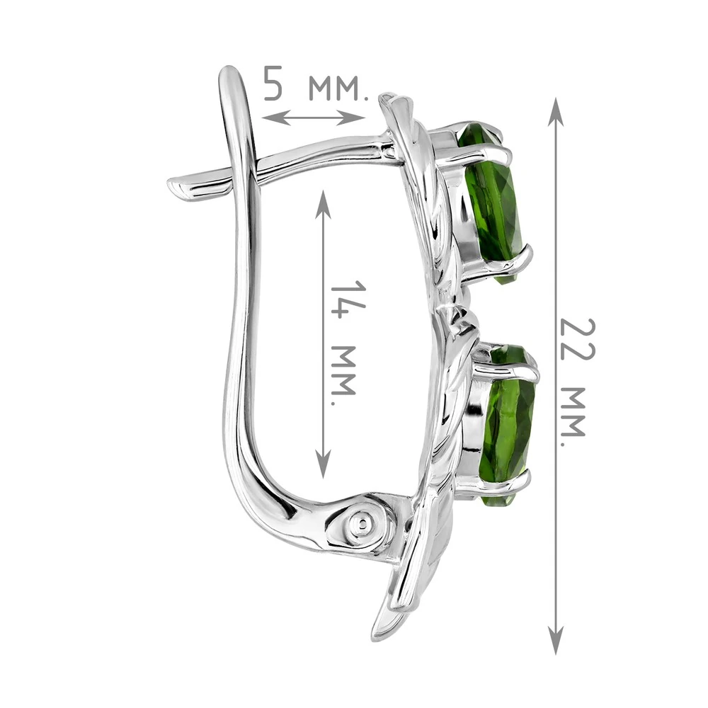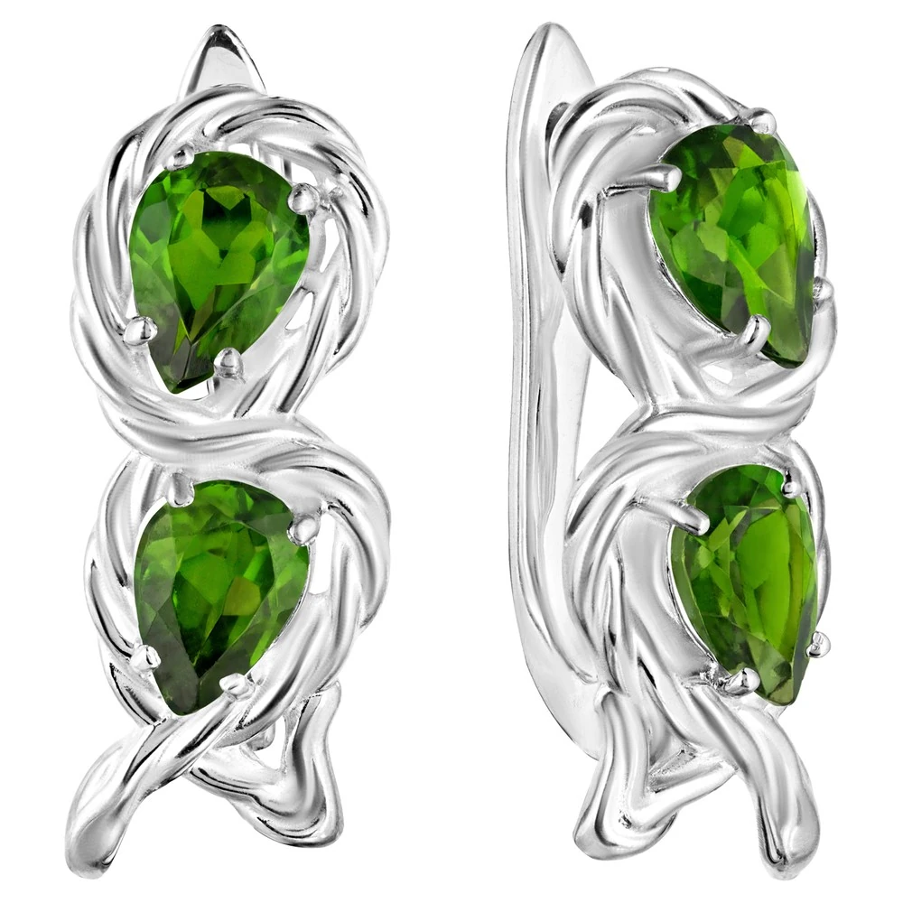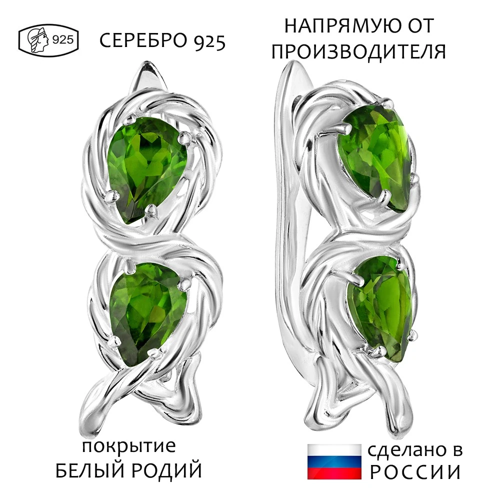 Серебряные серьги с натуральным хромдиопсидом - коллекция Ривьера / покрытие Белый Родий
