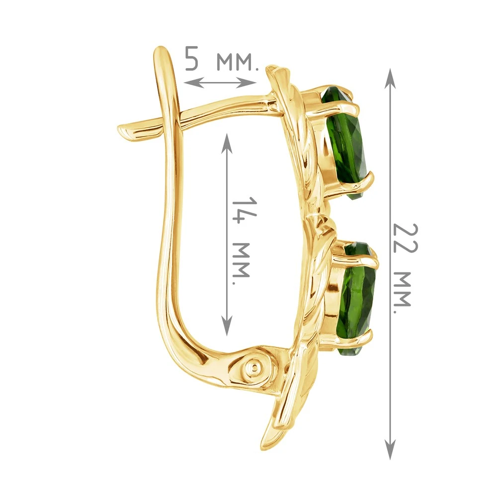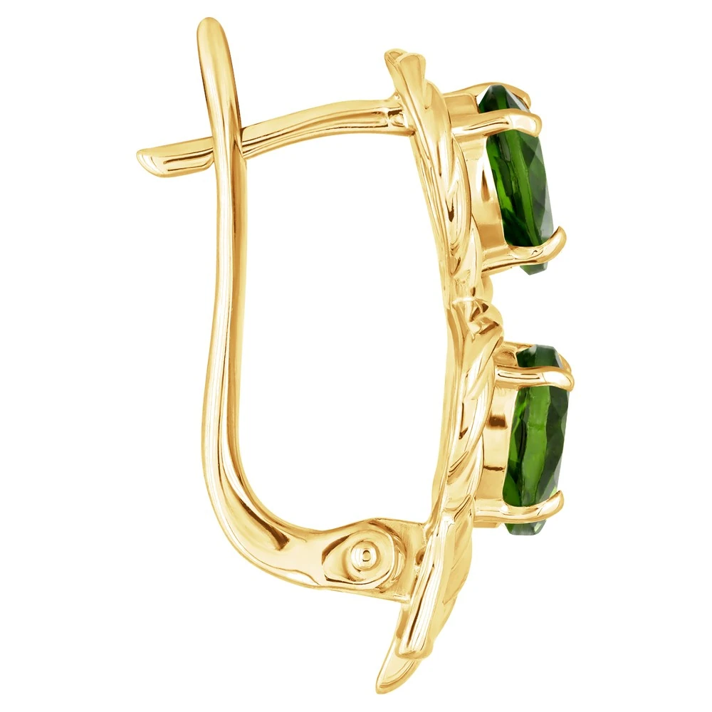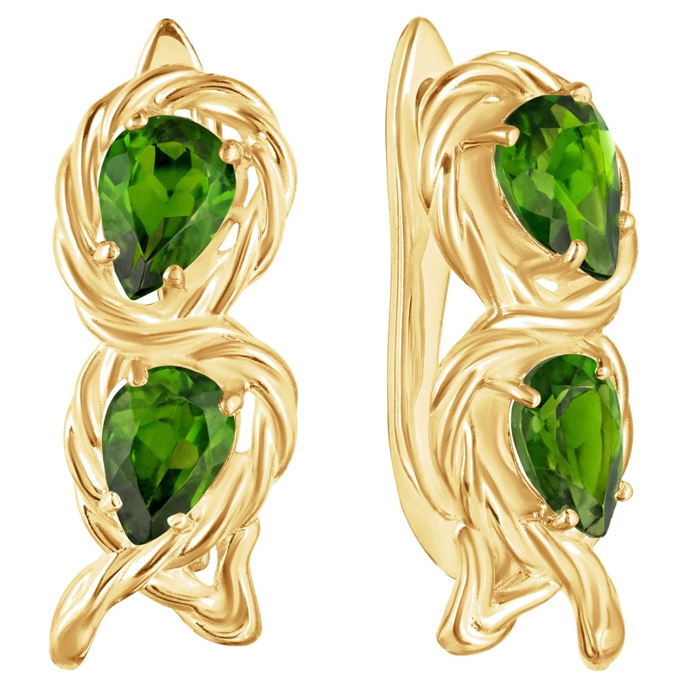 Серебряные серьги с натуральным хромдиопсидом - коллекция Ривьера. Серебряные серьги 925 пробы с покрытием желтое золото. Цвет покрытия соответствует швейцарскому цветовому стандарту NIHS -FF24ct и цвету чистого золото 999.99. На последней фотографии мы разместили сравнительную фотографию 3 цвета золотого покрытия. Помимо предания золотого цвета Вашему изделию, тонкий слой золота защищает от окисления. Для более стойкого эффекта золочения и долговечности покрытия мы дополнительно наносим подслой палладия (Pd). Средний вес изделия с камнями 4.71 гр. Месторождение: Хромдиопсид (Якутия, Россия). Хромдиопсид (Натуральный) груша 5*7 мм., средний вес: 0.75 карат. Все изделия собственного производства. Гарантия 12 месяцев.Арт. 8195. Диопсид богат на оттенки, и именно за многоликость получил такое название. Камень очищает энергетическое поле человека от негатива, стимулирует работу сердца. Ценился мистиками и магами за целую гамму положительных качеств.