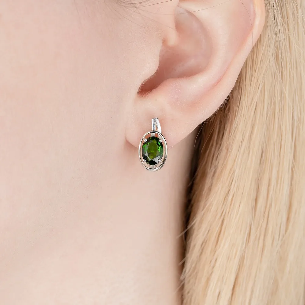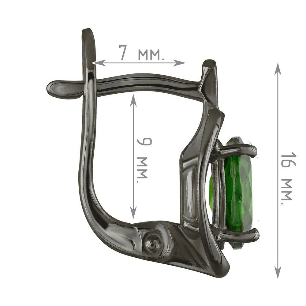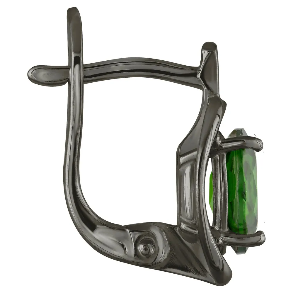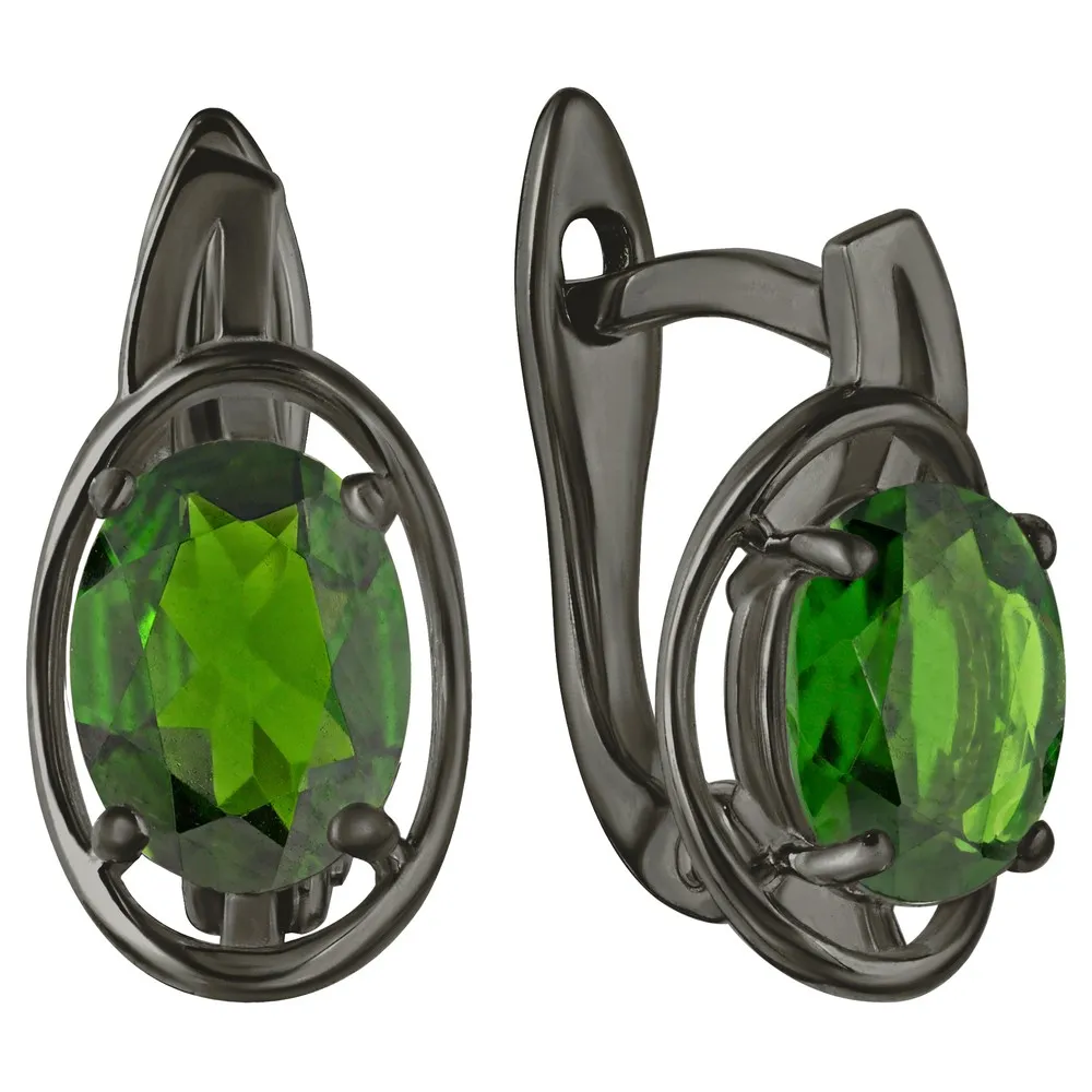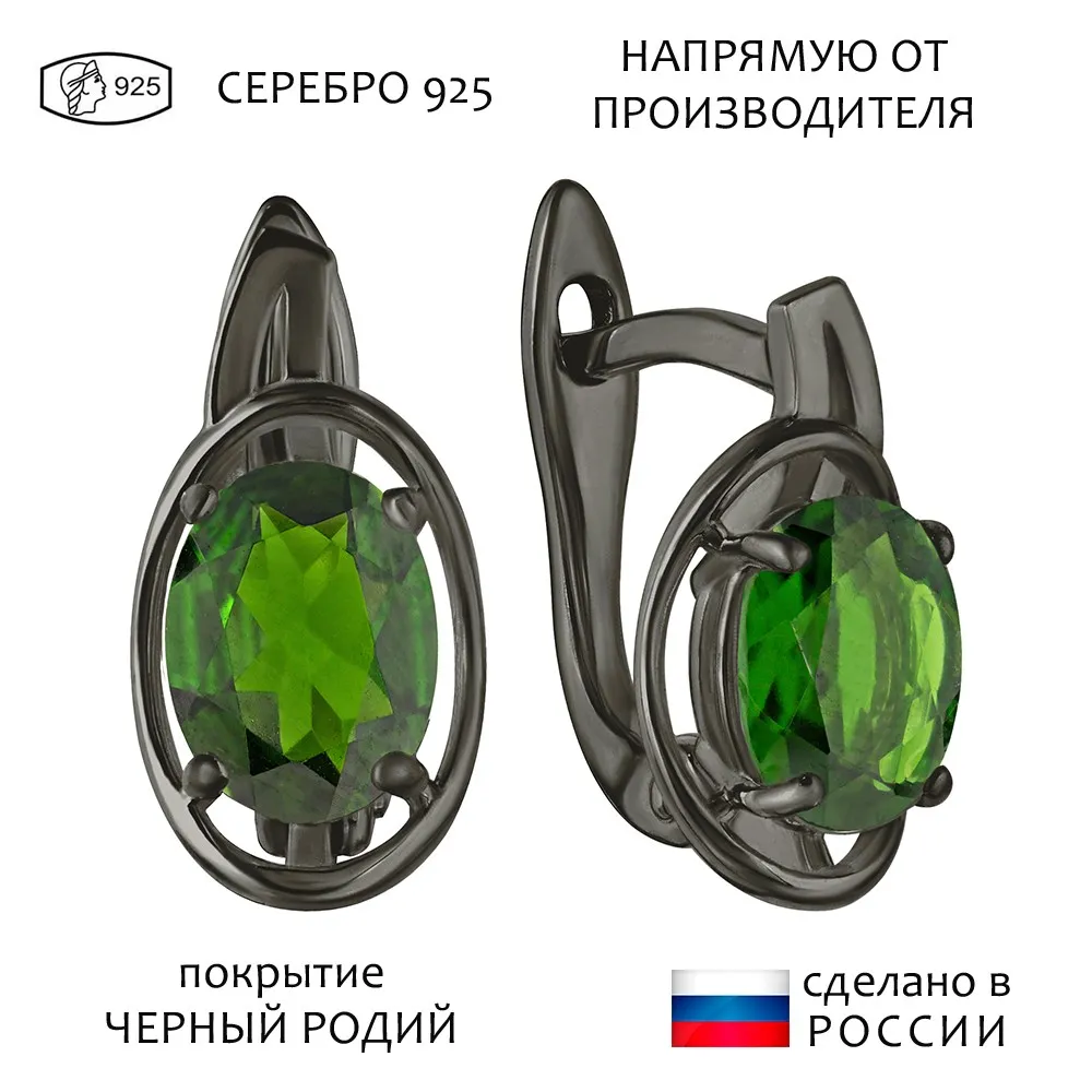 Серебряные серьги с натуральным хромдиопсидом - коллекция Фрейя, покрытие Черный Родий.
