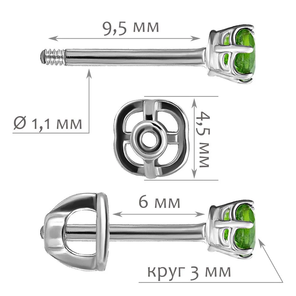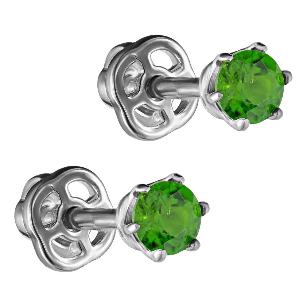Серебряные серьги гвоздики (пусеты) с натуральным хромдиопсидом, покрытие Палладий. Средний вес украшения с камнями 0.6 гр. Месторождение: Хромдиопсид (Якутия, Россия). Хромдиопсид (Натуральный) круг 3 мм., средний вес: 0.13 карат. Все изделия собственного производства и имеют гарантию 12 месяцев, к каждому изделию прилагается паспорт. Арт. 8322PD. Диопсид богат на оттенки, и именно за многоликость получил такое название. Камень очищает энергетическое поле человека от негатива, стимулирует работу сердца. Ценился мистиками и магами за целую гамму положительных качеств.