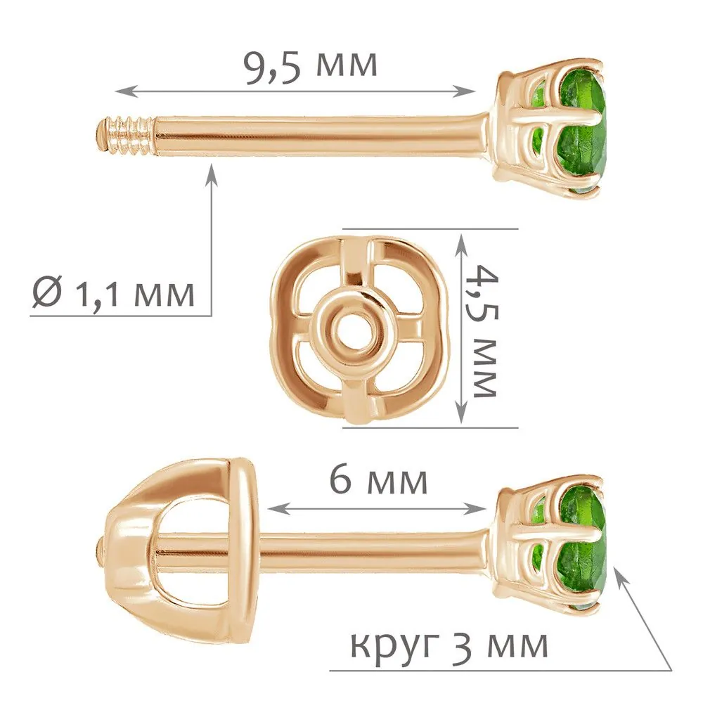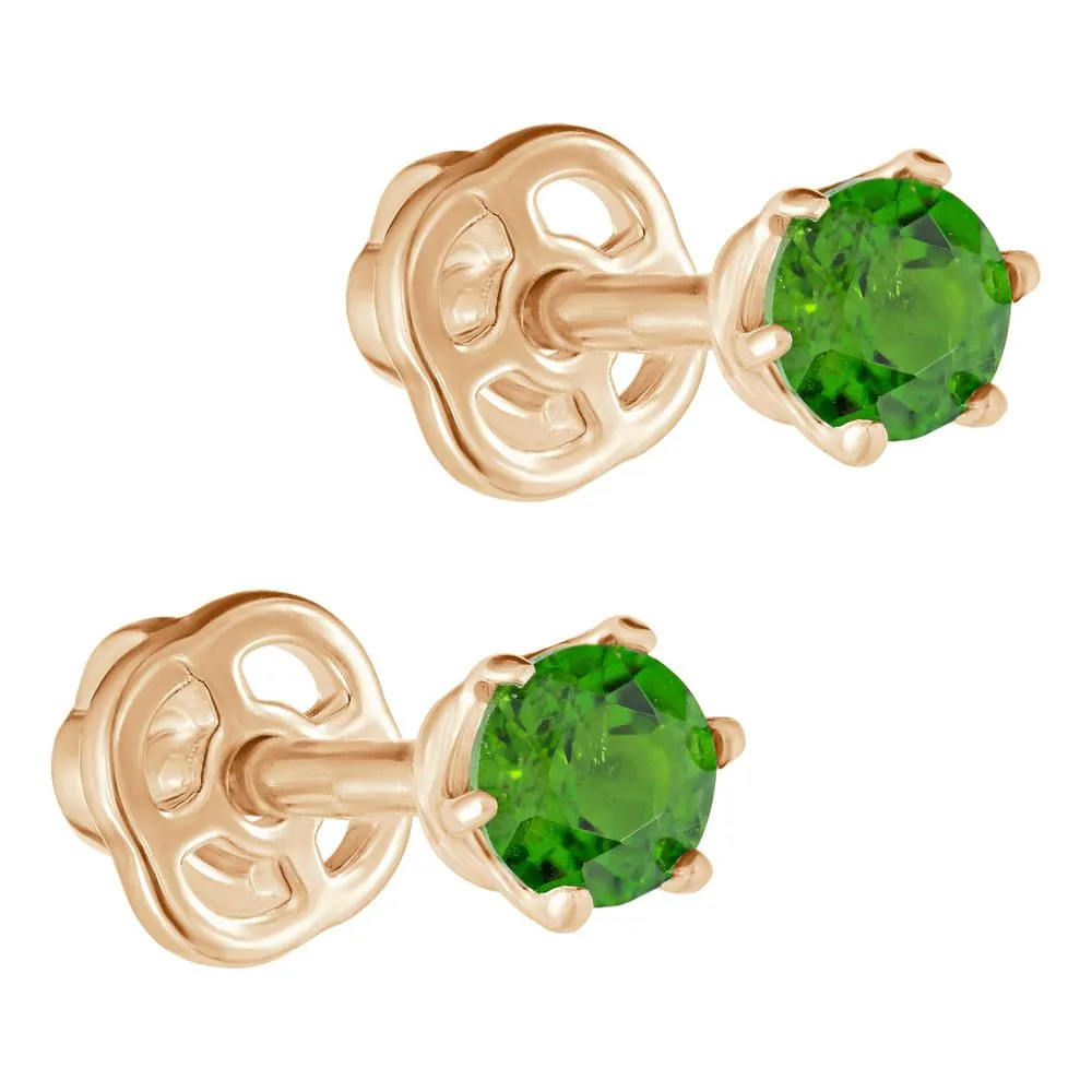 Серебряные серьги гвоздики (пусеты) с натуральным хромдиопсидом, покрытие Розовое Золото. Средний вес украшения с камнями 0.6 гр. Месторождение: Хромдиопсид (Якутия, Россия). Хромдиопсид (Натуральный) круг 3 мм., средний вес: 0.13 карат. Все изделия собственного производства и имеют гарантию 12 месяцев, к каждому изделию прилагается паспорт. Арт. 8322PG. Диопсид богат на оттенки, и именно за многоликость получил такое название. Камень очищает энергетическое поле человека от негатива, стимулирует работу сердца. Ценился мистиками и магами за целую гамму положительных качеств.