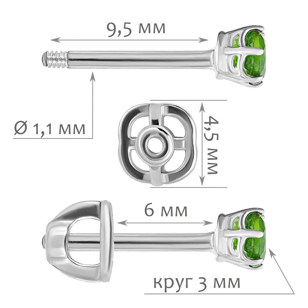 Серебряные серьги гвоздики (пусеты) с натуральным хромдиопсидом, покрытие Белый Родий. Средний вес украшения с камнями 0.6 гр. Месторождение: Хромдиопсид (Якутия, Россия). Хромдиопсид (Натуральный) круг 3 мм., средний вес: 0.13 карат. Все изделия собственного производства и имеют гарантию 12 месяцев, к каждому изделию прилагается паспорт. Арт. 8322WR. Диопсид богат на оттенки, и именно за многоликость получил такое название. Камень очищает энергетическое поле человека от негатива, стимулирует работу сердца. Ценился мистиками и магами за целую гамму положительных качеств.