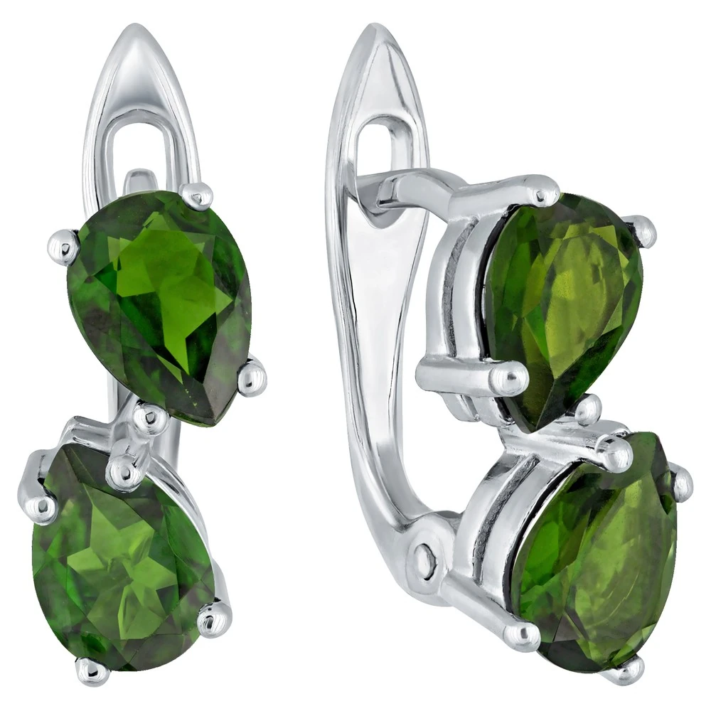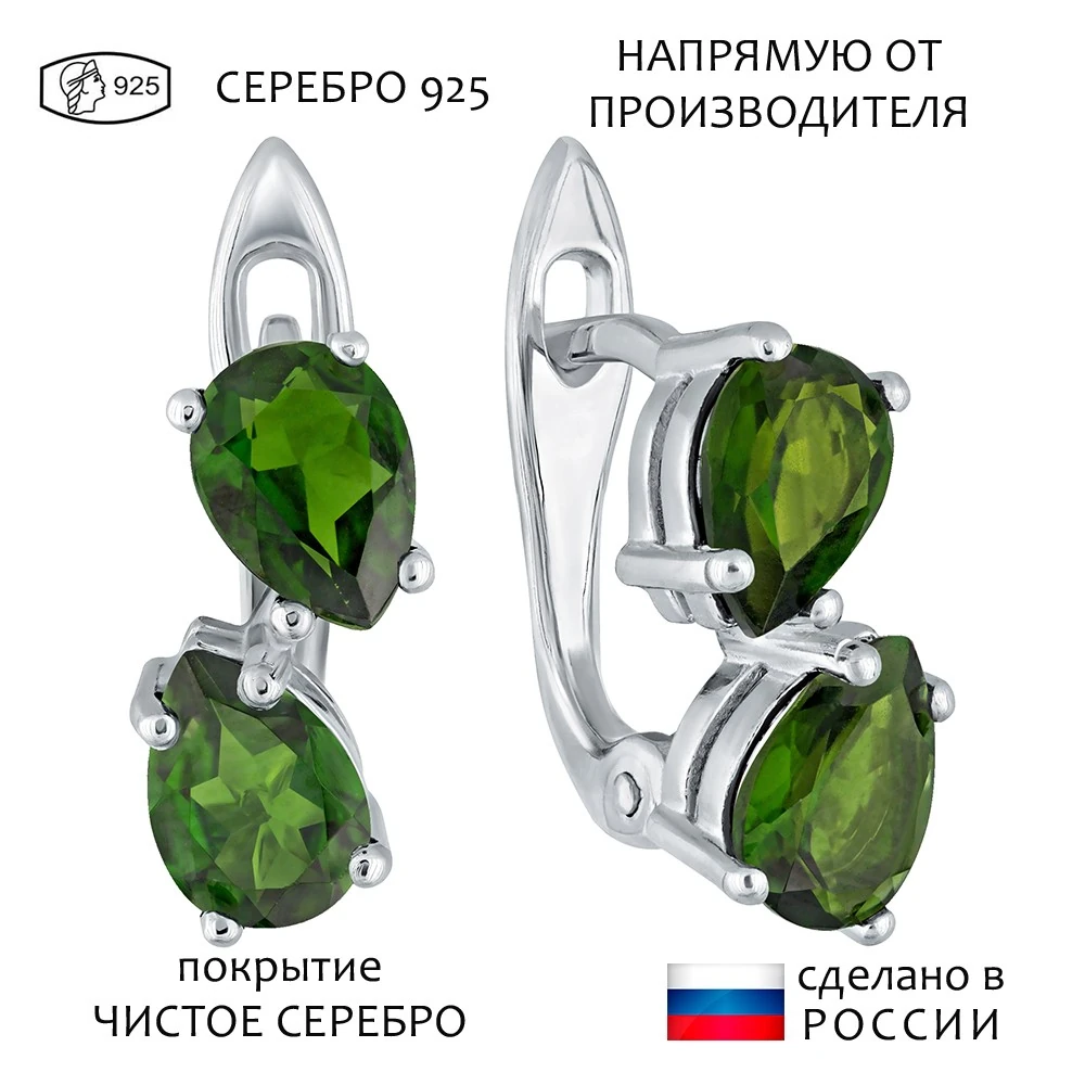 Серебряные серьги с натуральным хромдиопсидом - коллекция Дуэт / покрытие Чистое Серебро.Средний вес украшения с камнями 2.9 гр.Месторождение(я): Хромдиопсид (Якутия, Россия).Ювелирные вставки:Хромдиопсид (Натуральный) груша 5*7 мм., средний вес: 0.75 карат.Все изделия собственного производства и имеют гарантию 12 месяцев. Арт. 8687AG . Диопсид богат на оттенки, и именно за многоликость получил такое название. Камень очищает энергетическое поле человека от негатива, стимулирует работу сердца. Ценился мистиками и магами за целую гамму положительных качеств.