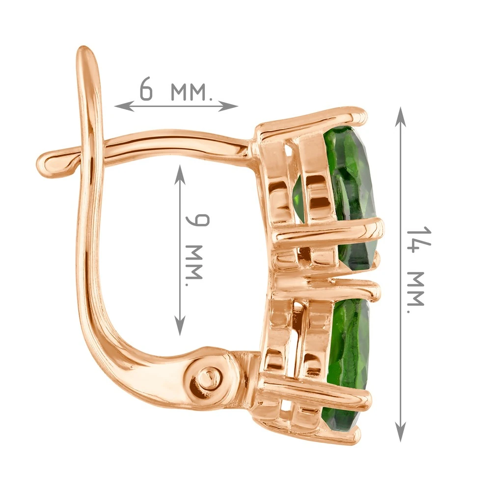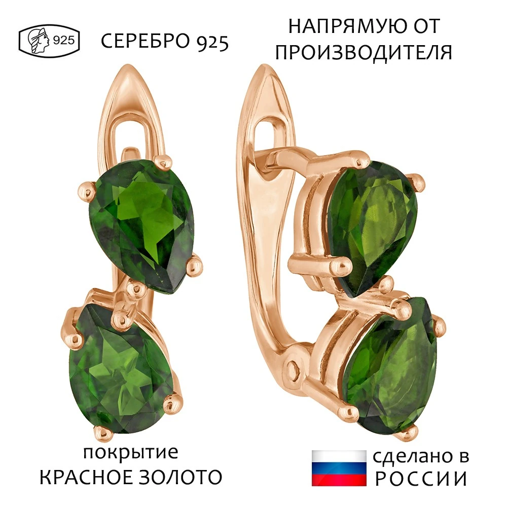 Серебряные серьги с натуральным хромдиопсидом - коллекция Дуэт / покрытие Красное Золото.Средний вес украшения с камнями 2.82 гр.Месторождение(я): Хромдиопсид (Якутия, Россия).Ювелирные вставки:Хромдиопсид (Натуральный) груша 5*7 мм., средний вес: 0.75 карат.Все изделия собственного производства и имеют гарантию 12 месяцев. Арт. 8687RG . Диопсид богат на оттенки, и именно за многоликость получил такое название. Камень очищает энергетическое поле человека от негатива, стимулирует работу сердца. Ценился мистиками и магами за целую гамму положительных качеств.